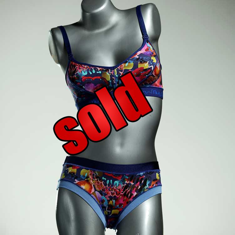 Sødt ensemble af bh med dobbeltlag, elastisk og åndbar bomuldsjersey til under og over og matchende trusser med unikt design. Yndig og behageligt, ret fremstillet unikt undertøj fra vores fabrik.