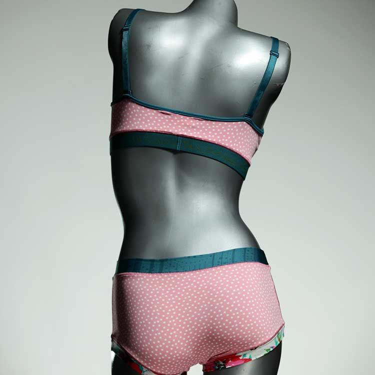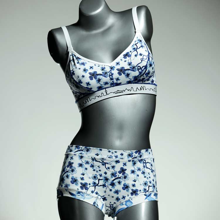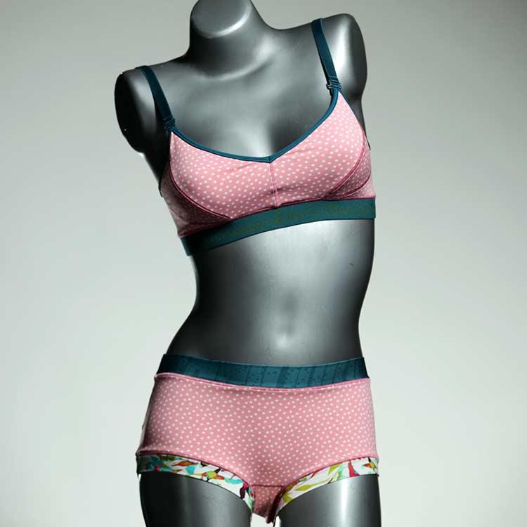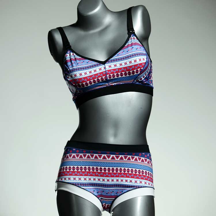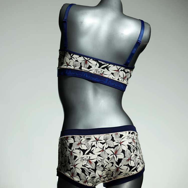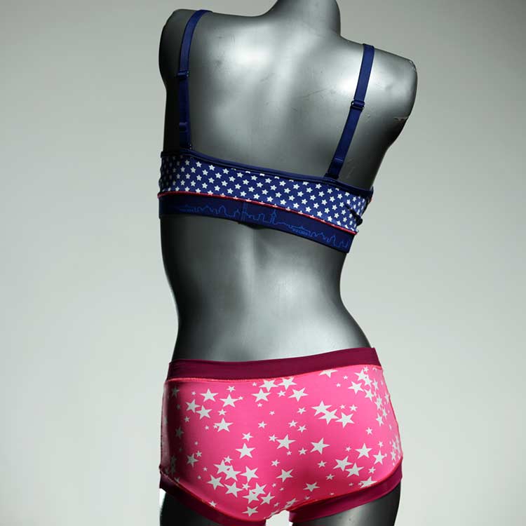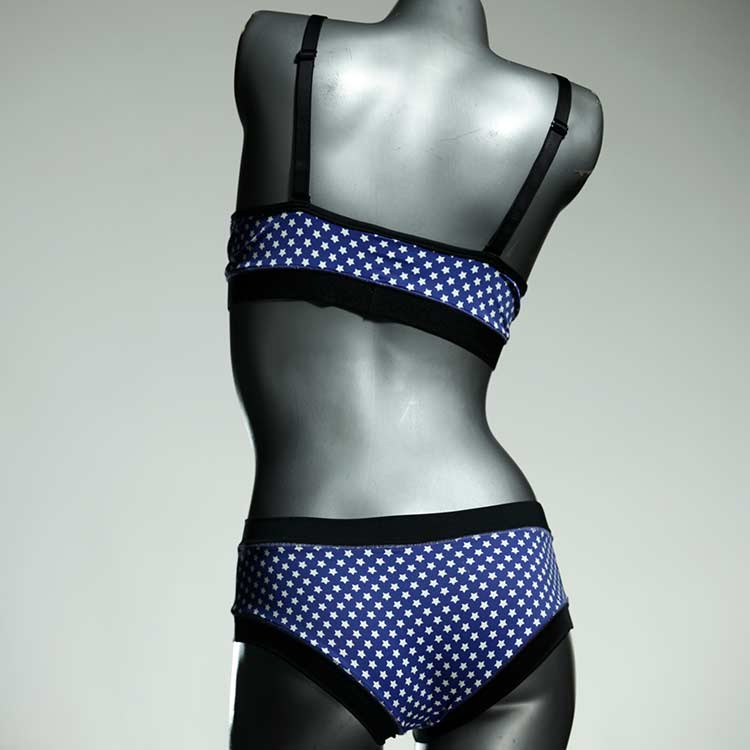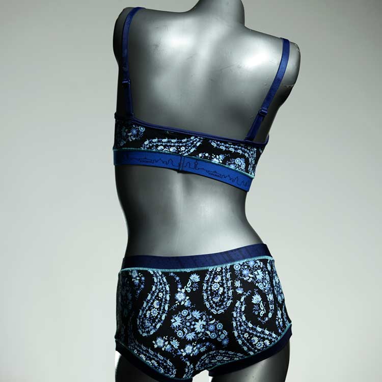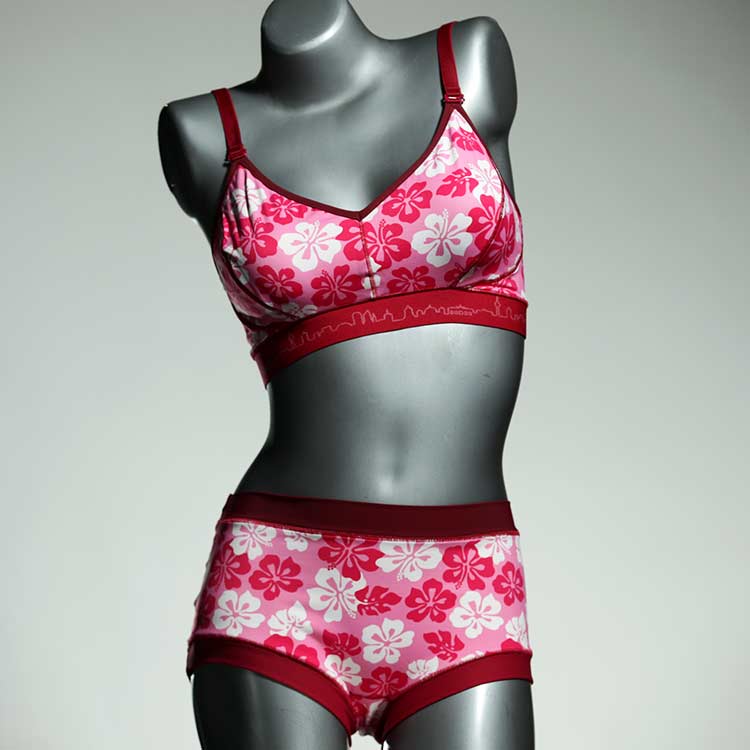 Ligesom de varme bukser og bh'er er disse sportsbikini-sæt ikke skåret for stramt, passer lige så godt og glider ikke. Materialet er af høj kvalitet og lysfast Lycra fra en lille vævemølle nær Barcelona. Stropperne er 16 mm brede og justerbare. Top uden bøjle, pude eller fastgørelse. Lavet af høj kvalitet Lycra og uden elastik. Med svømmefor foran.