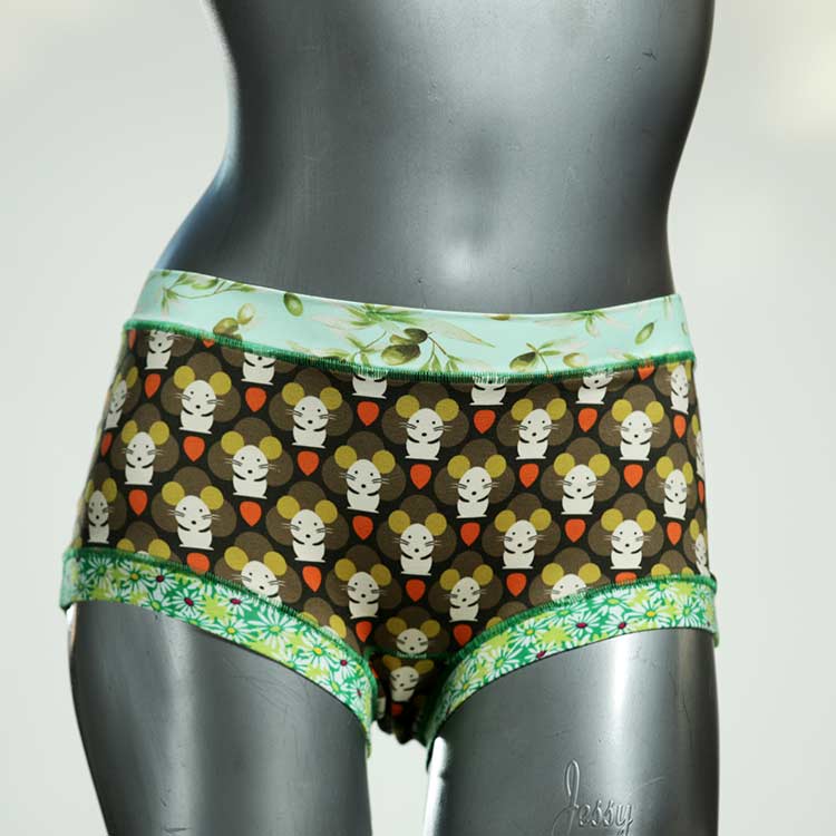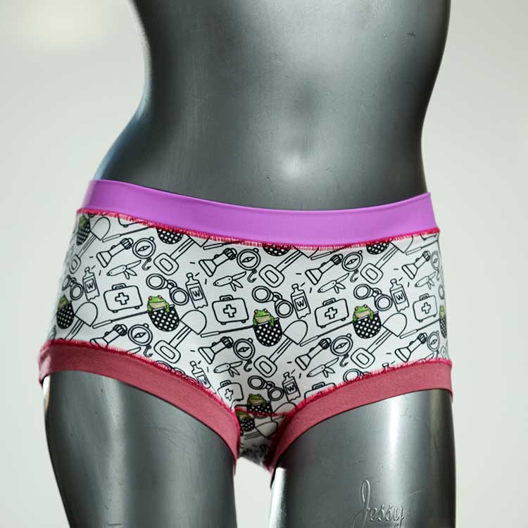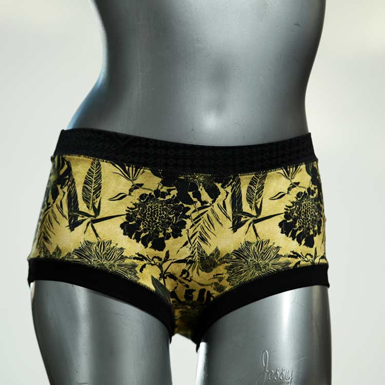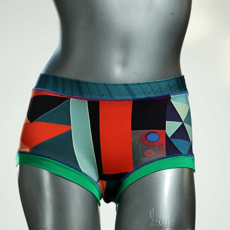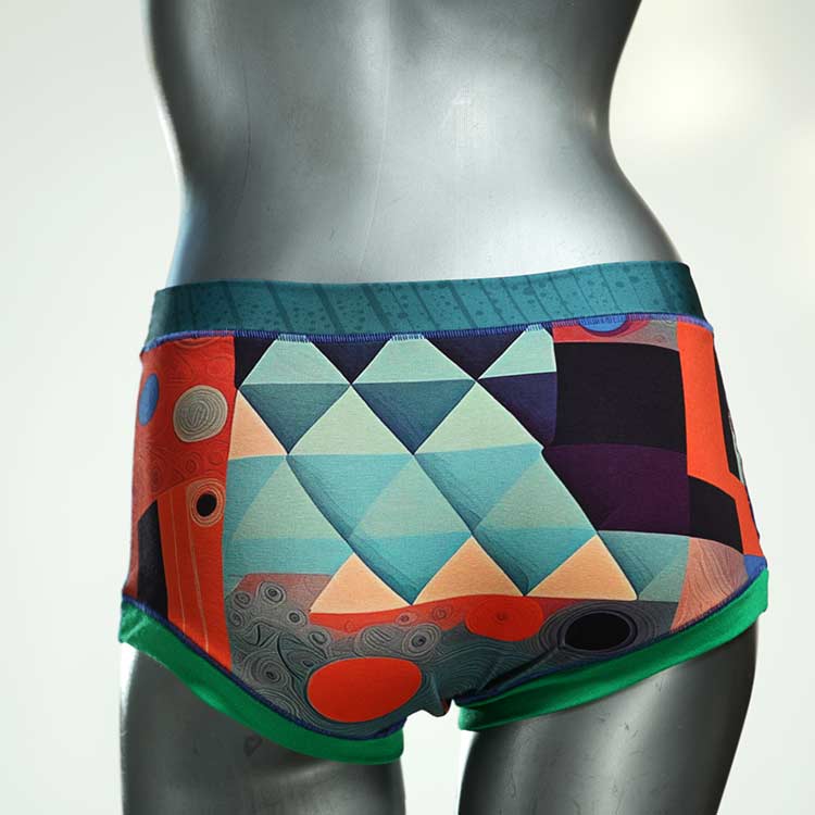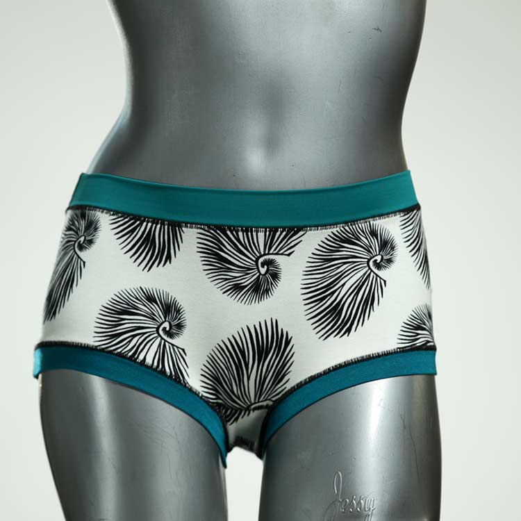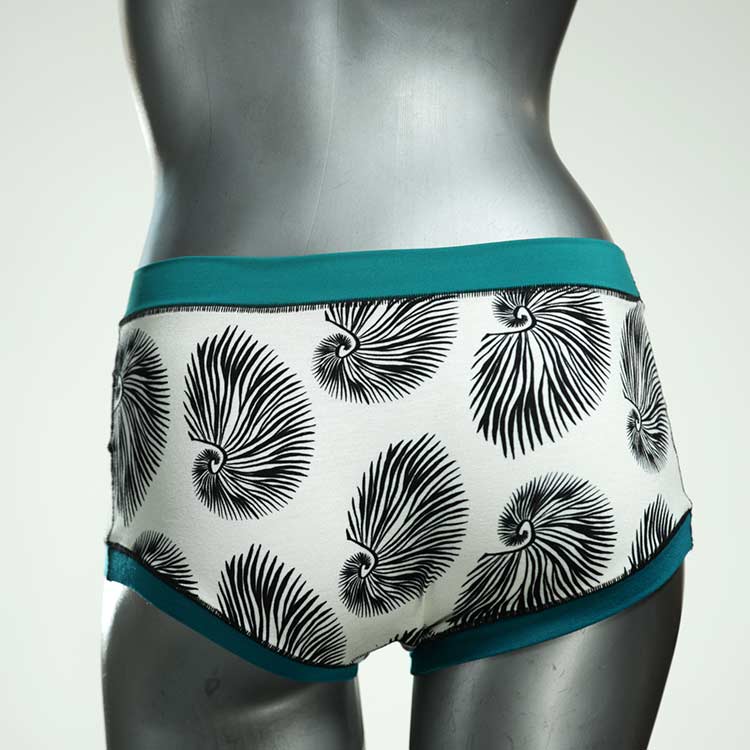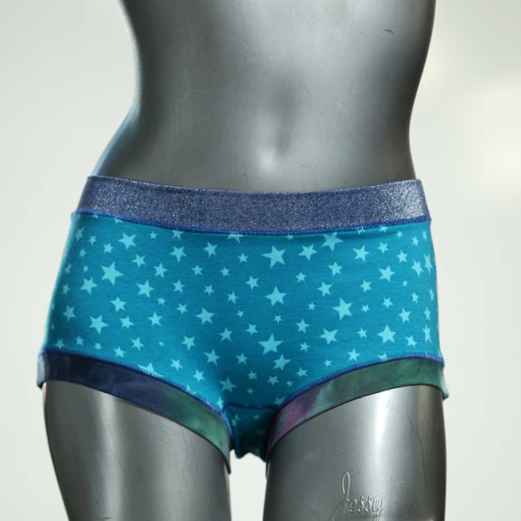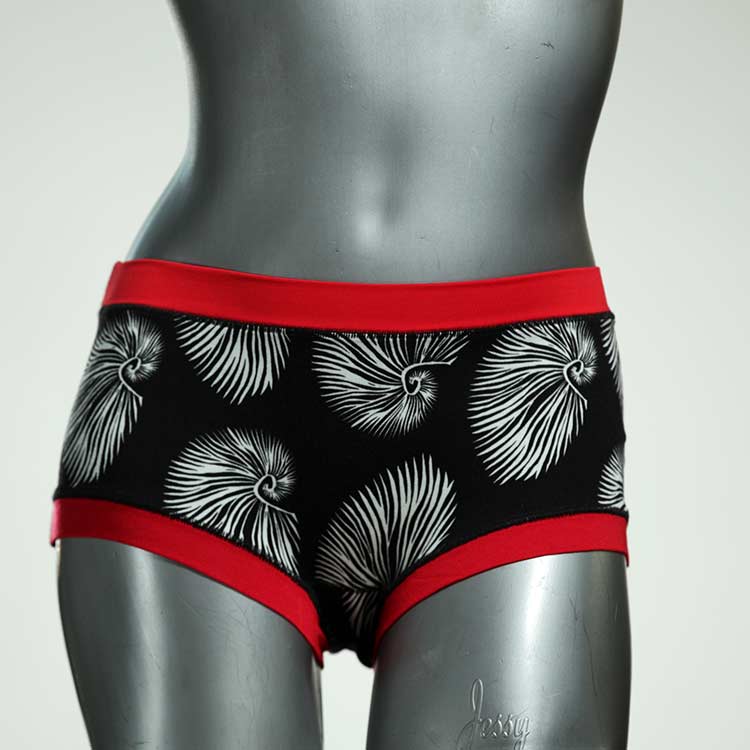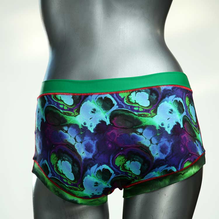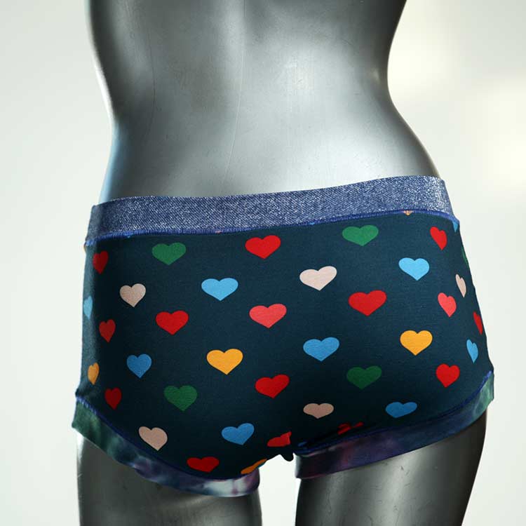 Hotpants er vores bestseller lige efter trusser. Ægte enestående håndlavede genstande fremstillet i Berlin. Er relativt bredt skåret og lavet af blød og elastisk bomuldsjersey uden klæbende gummi. Dækker helt bunden afhængigt af personen og bliver ikke fanget nogen steder. Svarende til boyshort. Hudvenlig og meget behagelig.