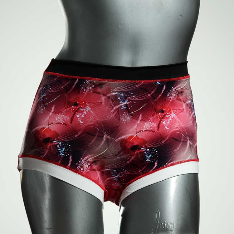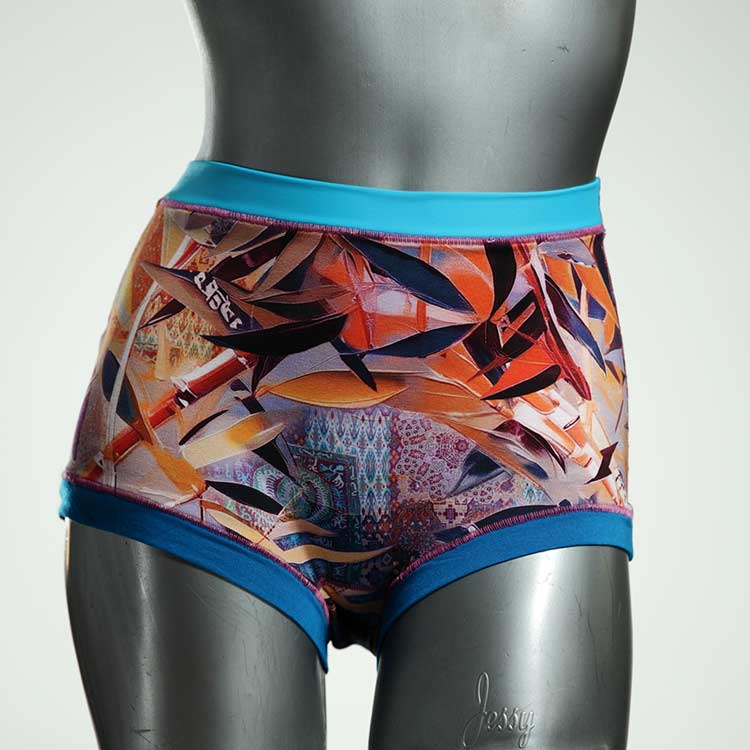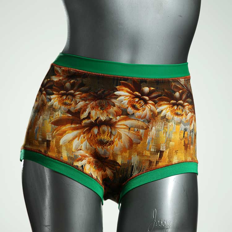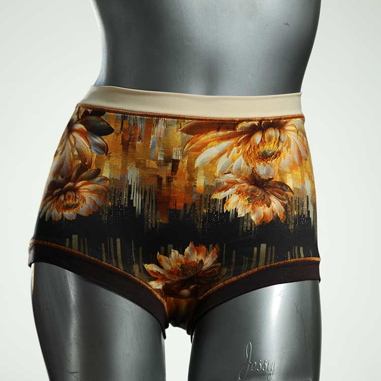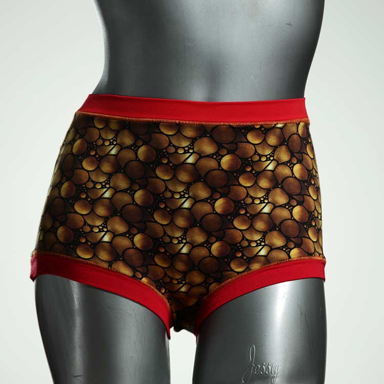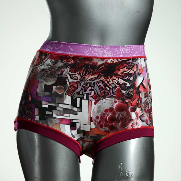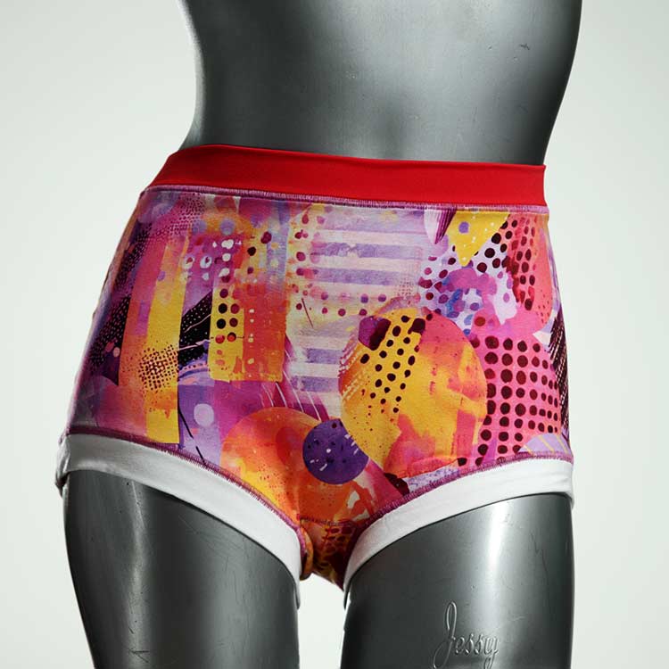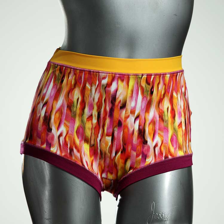 Disse særligt høje snitbukser blev ofte anmodet om og er nu tilgængelige til salg. Ægte enestående håndlavede genstande fremstillet i Berlin. Lavet af blød og elastisk bomuldsjersey uden klæbende gummi. Dækker helt bunden og bliver ikke fanget nogen steder. Hudvenlig og meget behagelig.