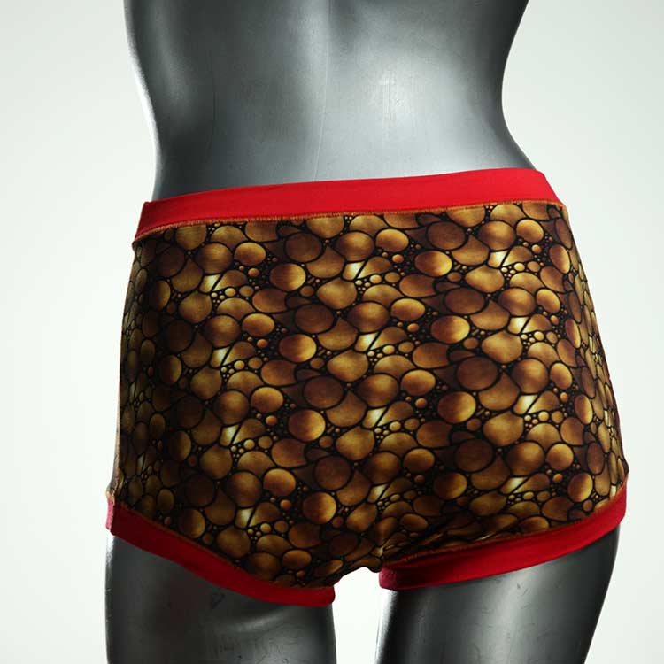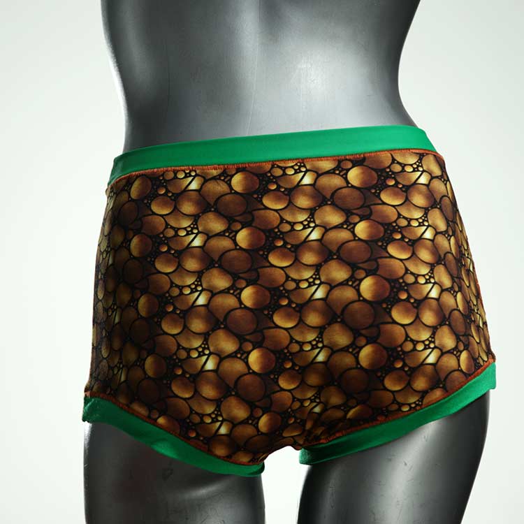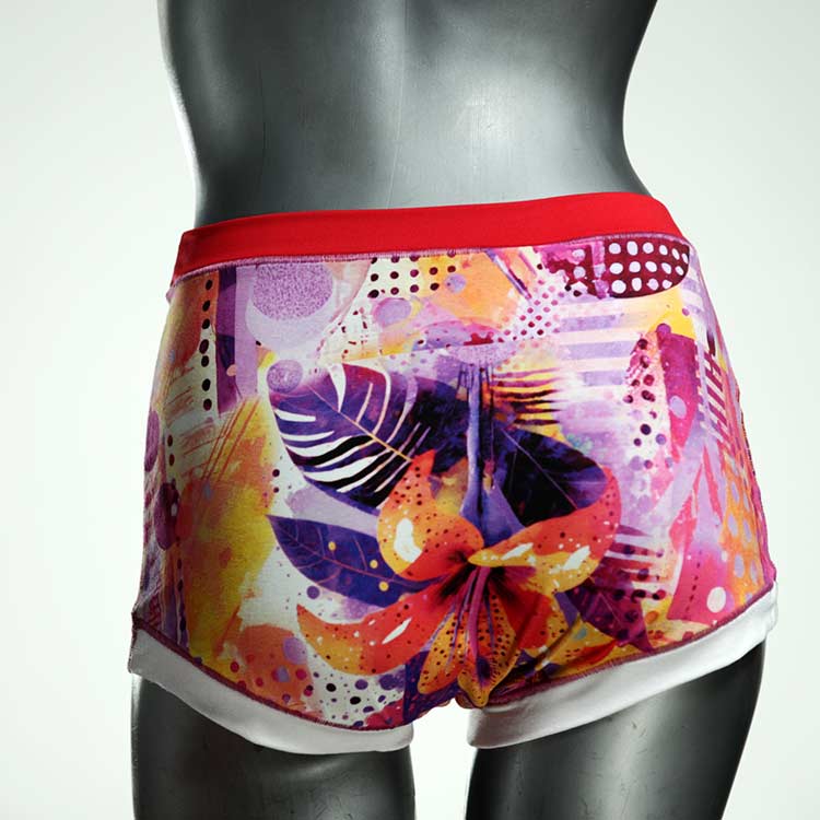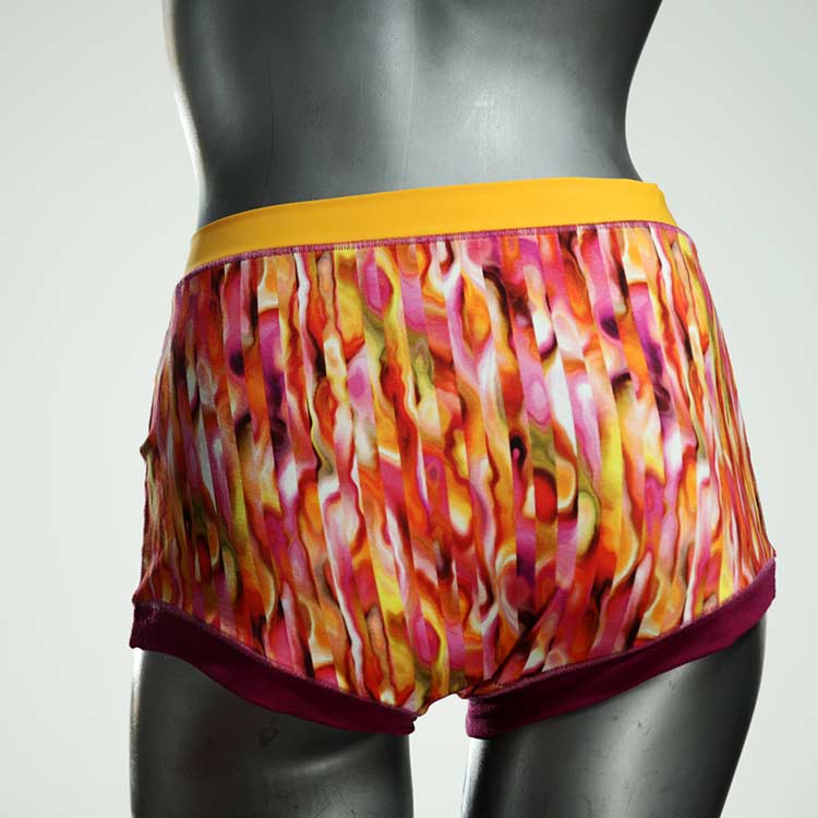 Disse særligt brede og komfortable hotpants går ned til navlen og er virkelige unikke genstande fremstillet i Berlin. Lavet af blød, elastisk og hudvenlig bomuldsjersey uden irriterende gummi, denne hotpant dækker helt bunden og sidder ikke fast noget sted.