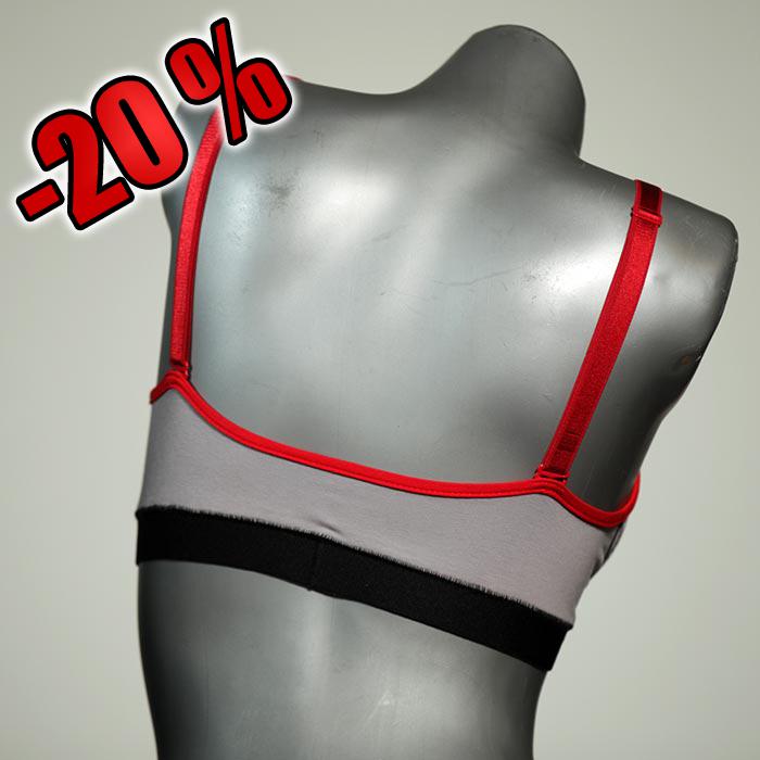 Hyggelig, blød bh i åndbar økologisk bomuldsjersey med unikt design. Et rigtigt engangs stykke fra lokal produktion. Trådløs uden pude eller fastgørelse, de er behagelige at have på. Stropperne er 16 mm brede, kopperne er dobbelt lag og lavet af organisk bomuld på indersiden. Også velegnet som amme-BH'er.