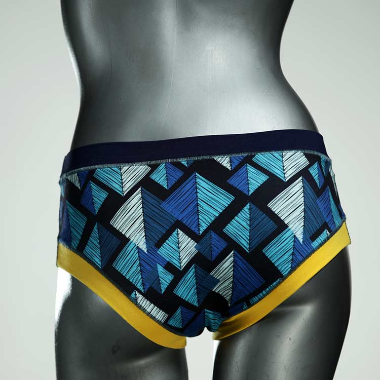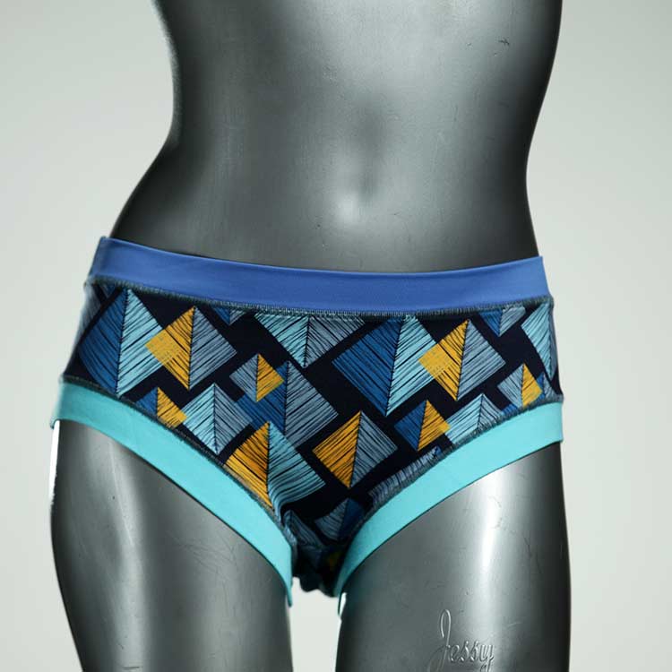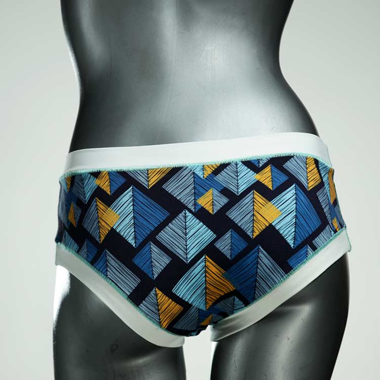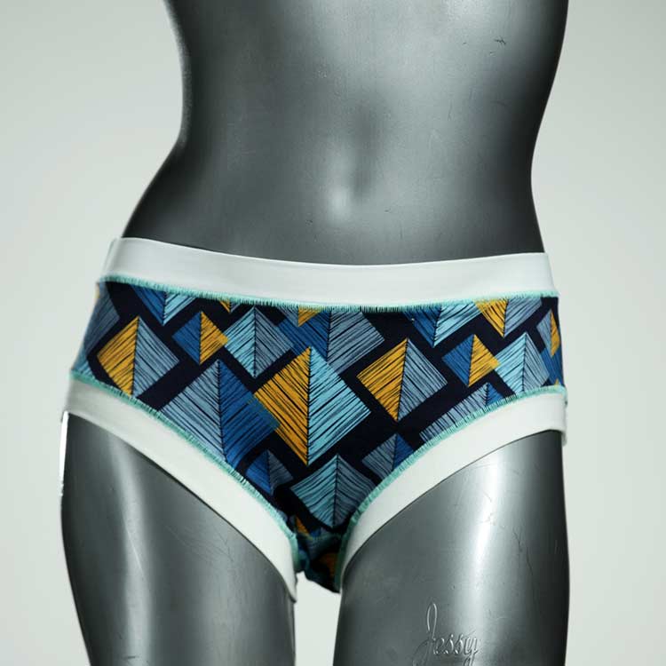 Disse søde, komfortable trusser lavet af blød økologisk bomuld er virkelige unikke stykker og håndlavet retfærdigt og lokalt. Hudvenlig, åndbar og meget behagelig at have på. Dækker den nederste halvdel eller brasiliansk-lignende, men er nøjagtigt bred nok til ikke at blive fastklemt. Økologisk vegansk sexet, retro økologisk trusse lavet i Berlin.