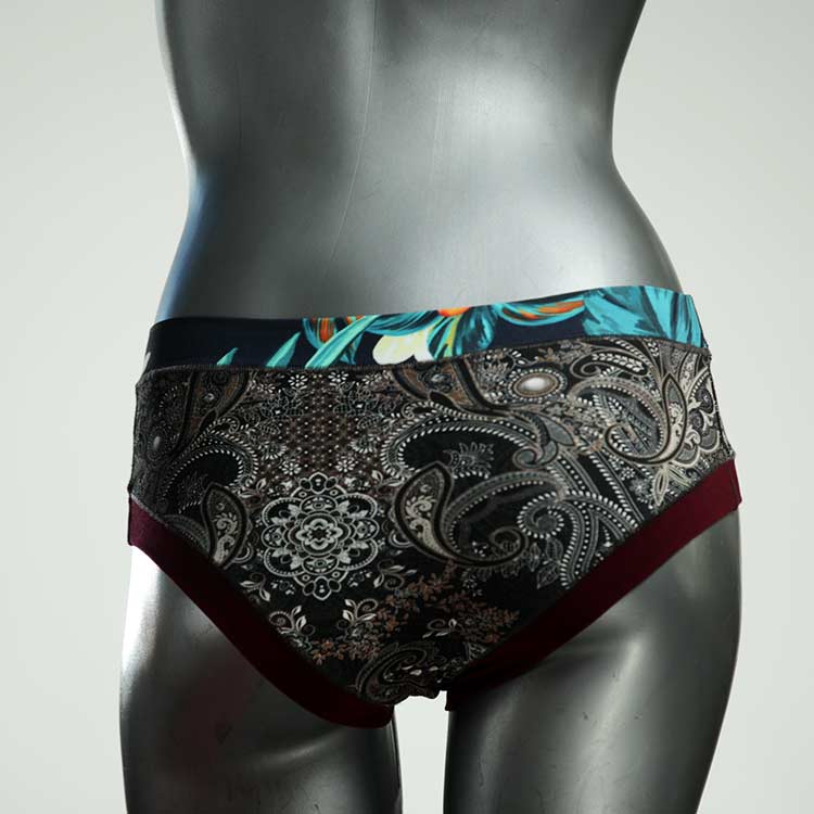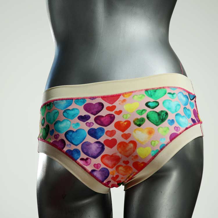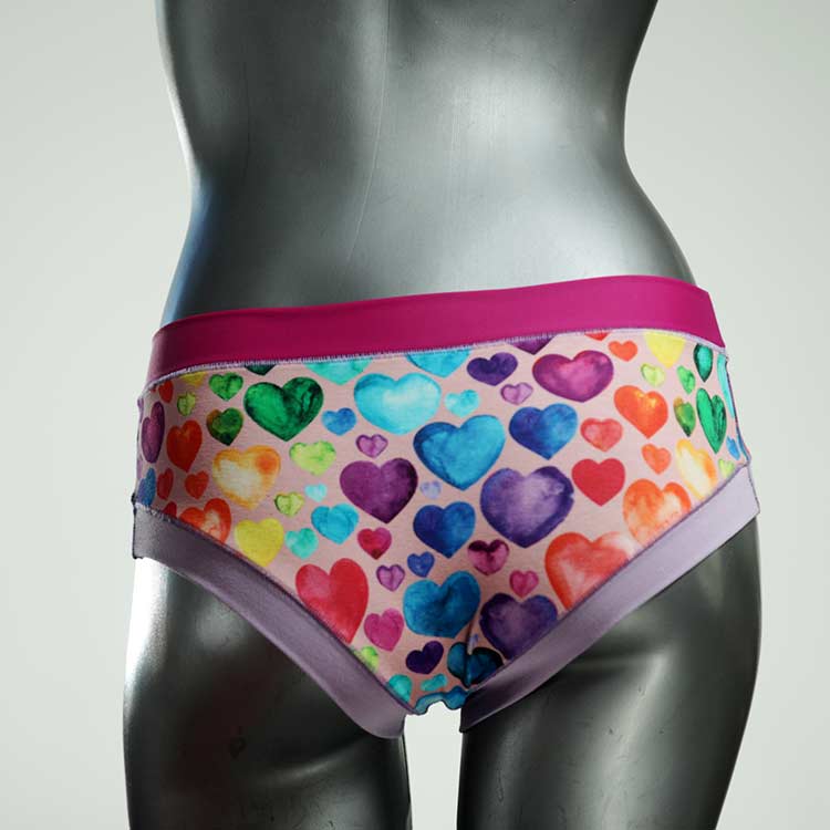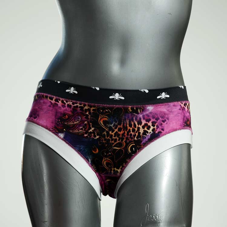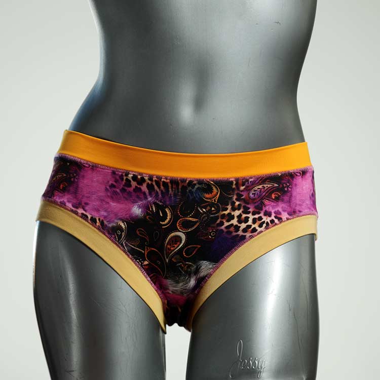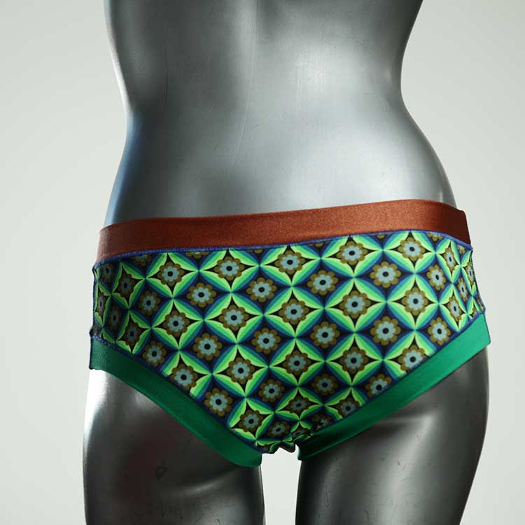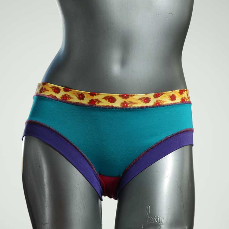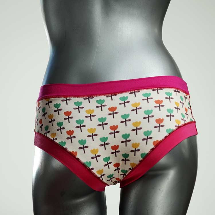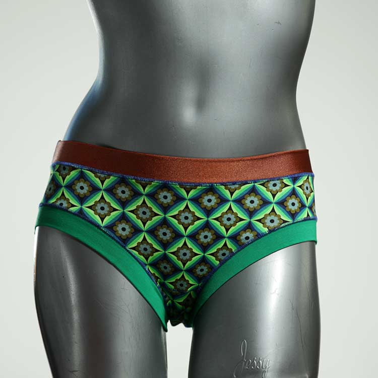 Disse søde, komfortable trusser lavet af blød økologisk bomuld er virkelige unikke stykker og håndlavet retfærdigt og lokalt. Hudvenlig, åndbar og meget behagelig at have på. Dækker den nederste halvdel eller brasiliansk-lignende, men er nøjagtigt bred nok til ikke at blive fastklemt. Økologisk vegansk sexet, retro økologisk trusse lavet i Berlin.