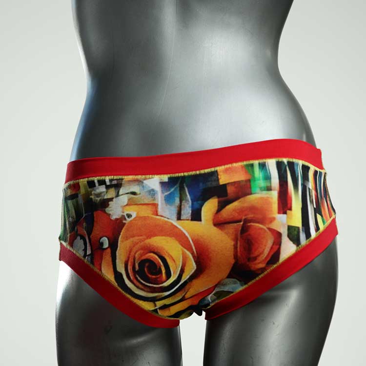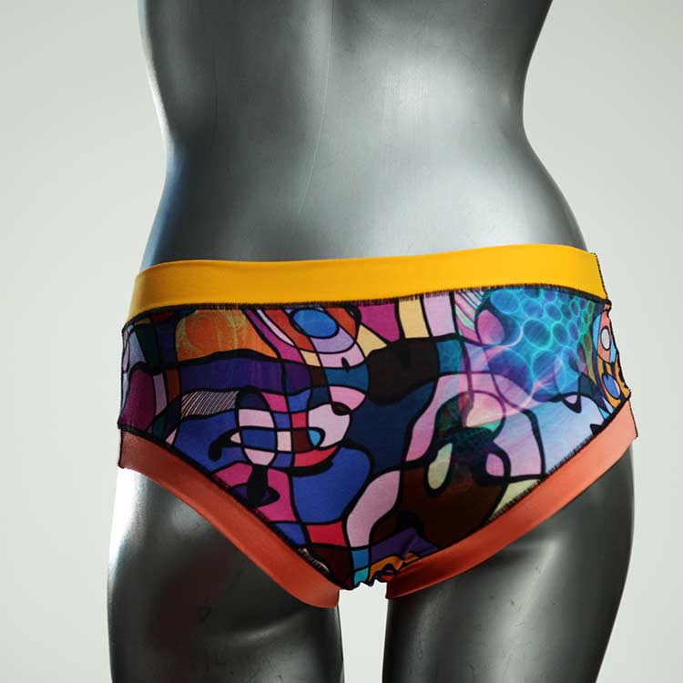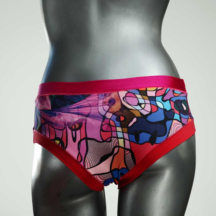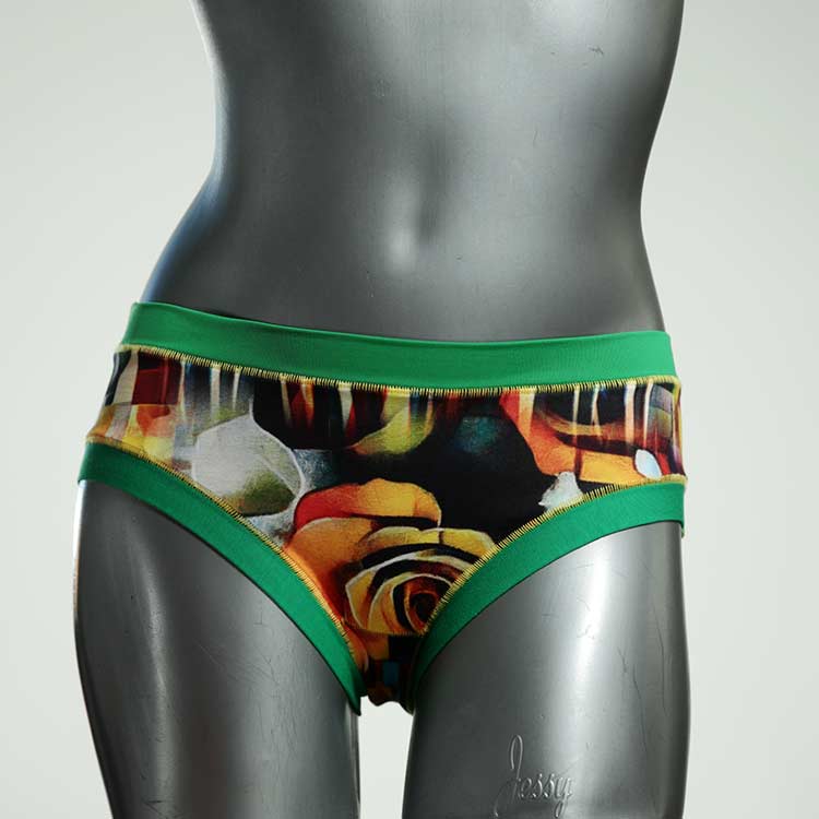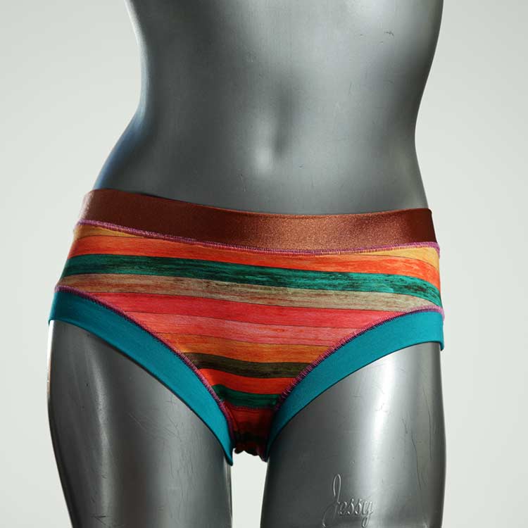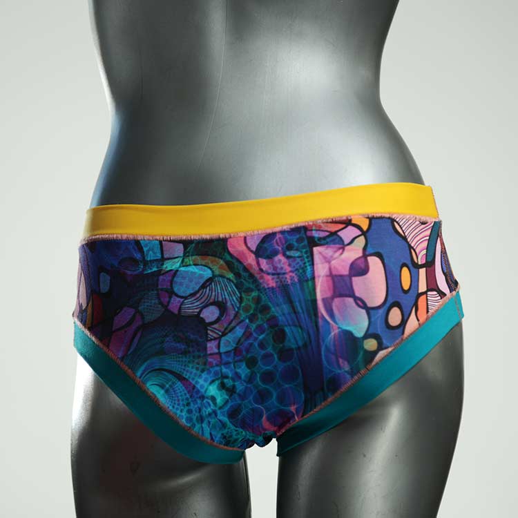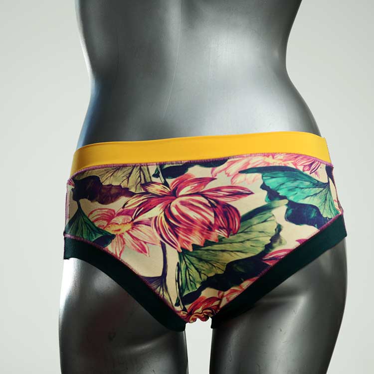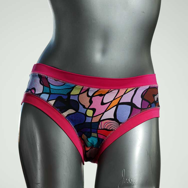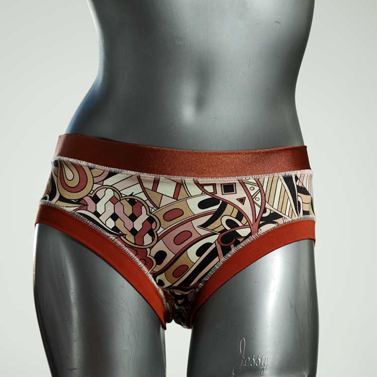 Disse søde, komfortable trusser lavet af blød økologisk bomuld er virkelige unikke stykker og håndlavet retfærdigt og lokalt. Hudvenlig, åndbar og meget behagelig at have på. Dækker den nederste halvdel eller brasiliansk-lignende, men er nøjagtigt bred nok til ikke at blive fastklemt. Økologisk vegansk sexet, retro økologisk trusse lavet i Berlin.