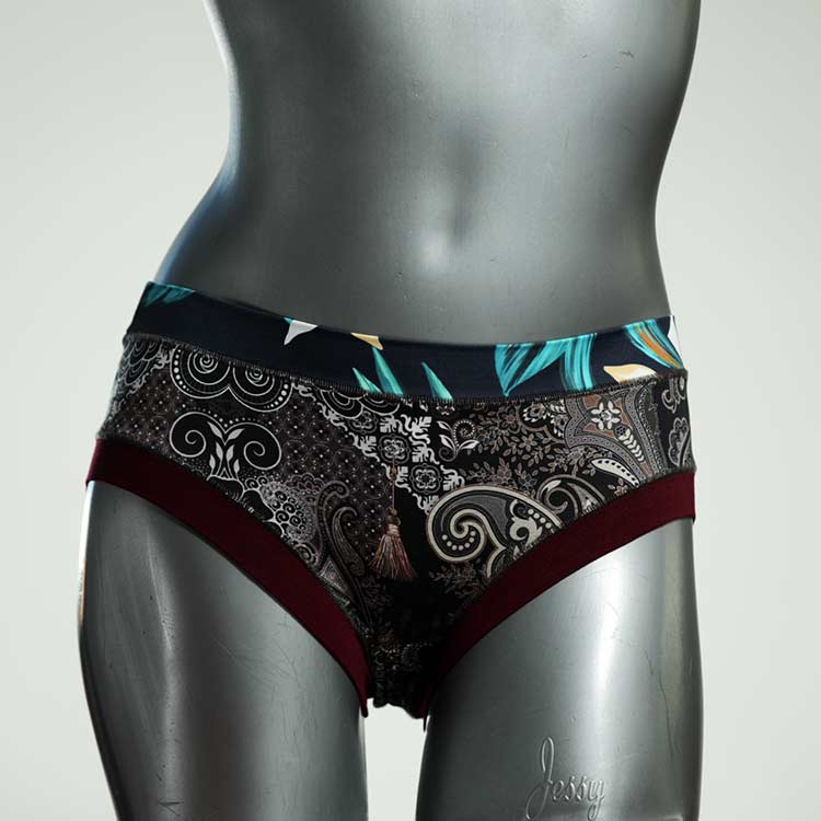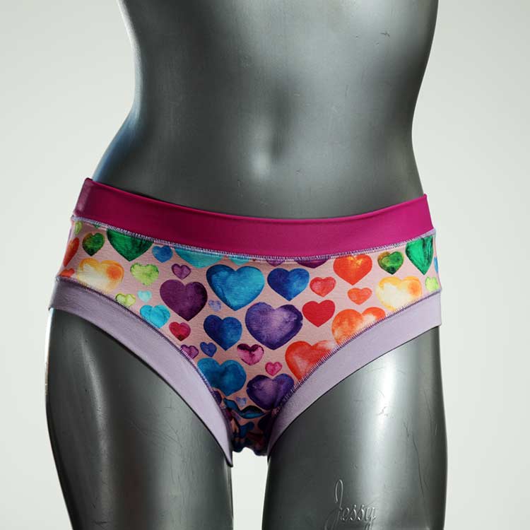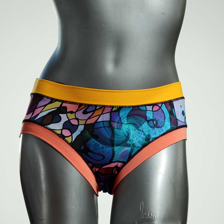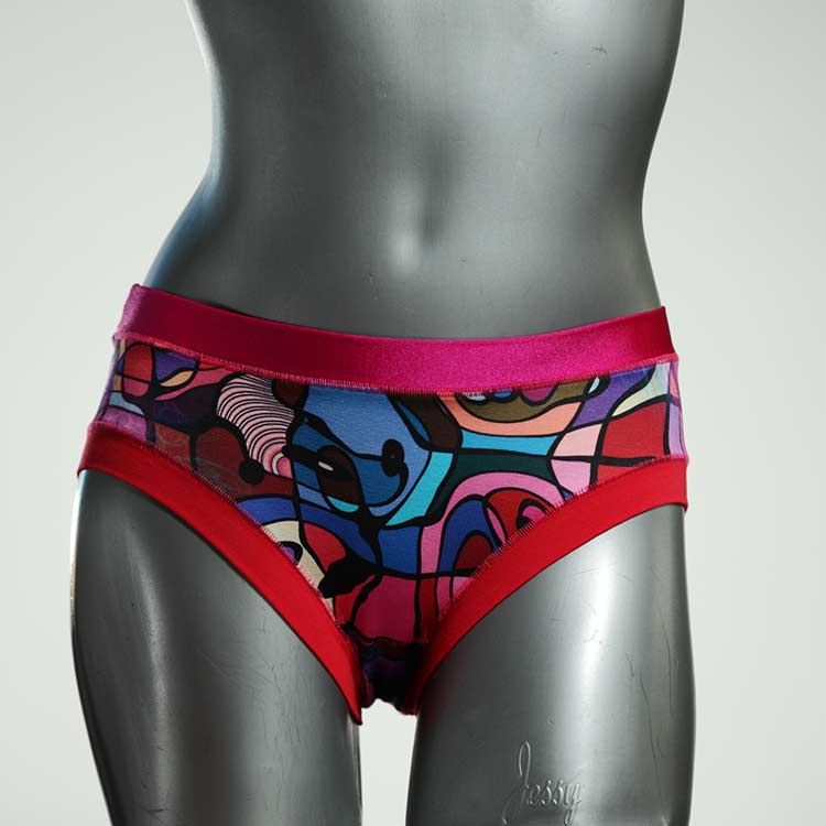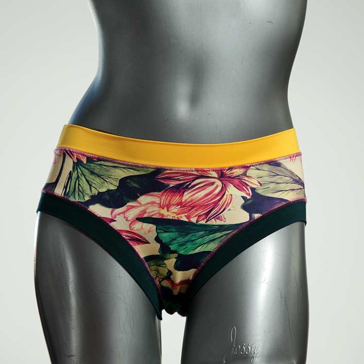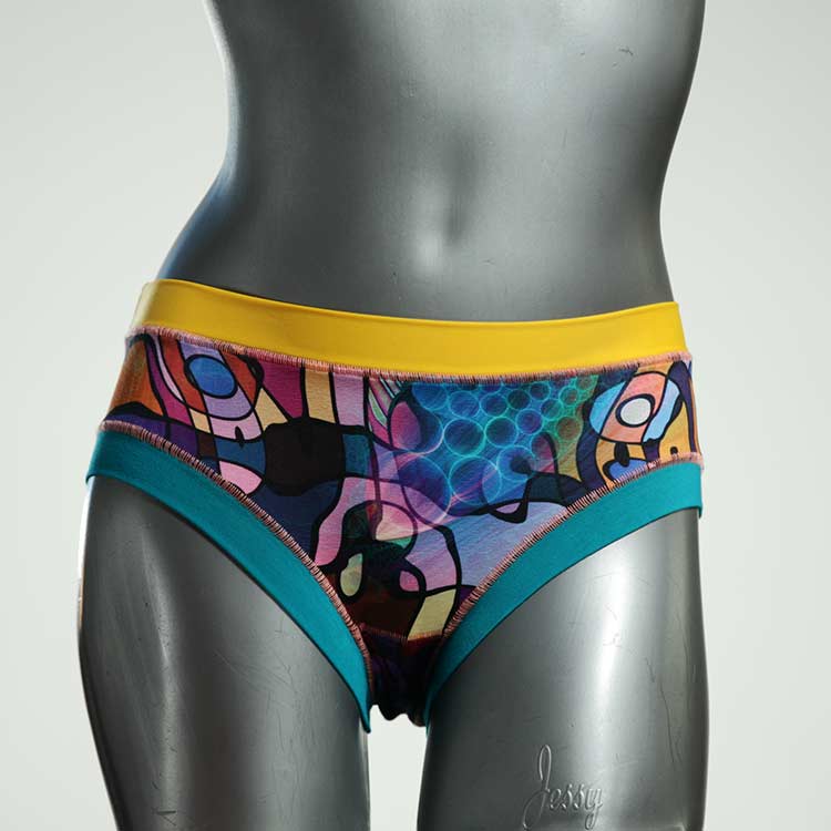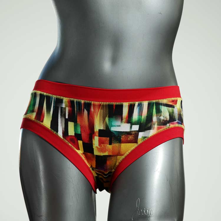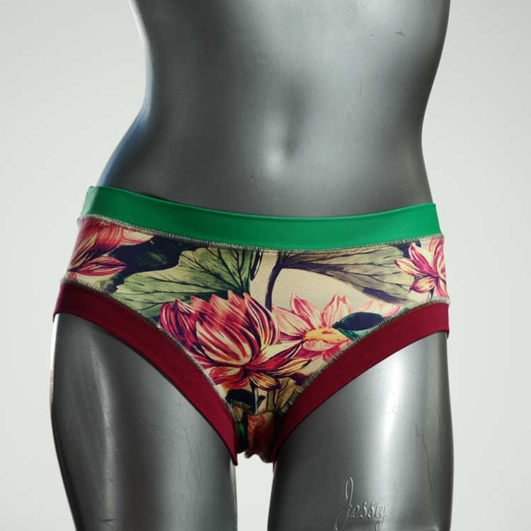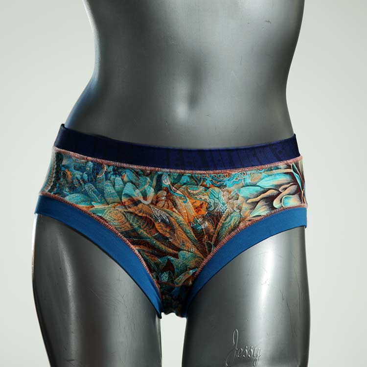 Disse søde, komfortable trusser lavet af blød økologisk bomuld er virkelige unikke stykker og håndlavet retfærdigt og lokalt. Hudvenlig, åndbar og meget behagelig at have på. Dækker den nederste halvdel eller brasiliansk-lignende, men er nøjagtigt bred nok til ikke at blive fastklemt. Økologisk vegansk sexet, retro økologisk trusse lavet i Berlin.