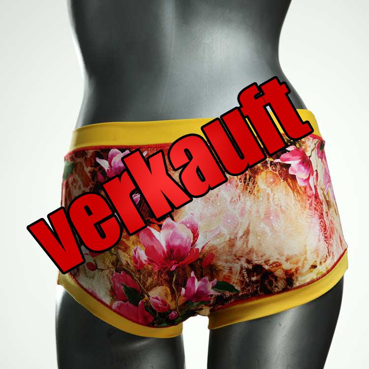 Diese schöne und bequeme Hotpant aus GOTS-zertifizierter Biobaumwolle gibt es nur einmal und sie wurde in unserem Atelier in Berlin für Sie zugeschnitten, entworfen und genäht. Wir erschaffen täglich neue Unterwäsche-Einzelstücke aus weichen kunterbunten Biobaumwoll-Jerseys.