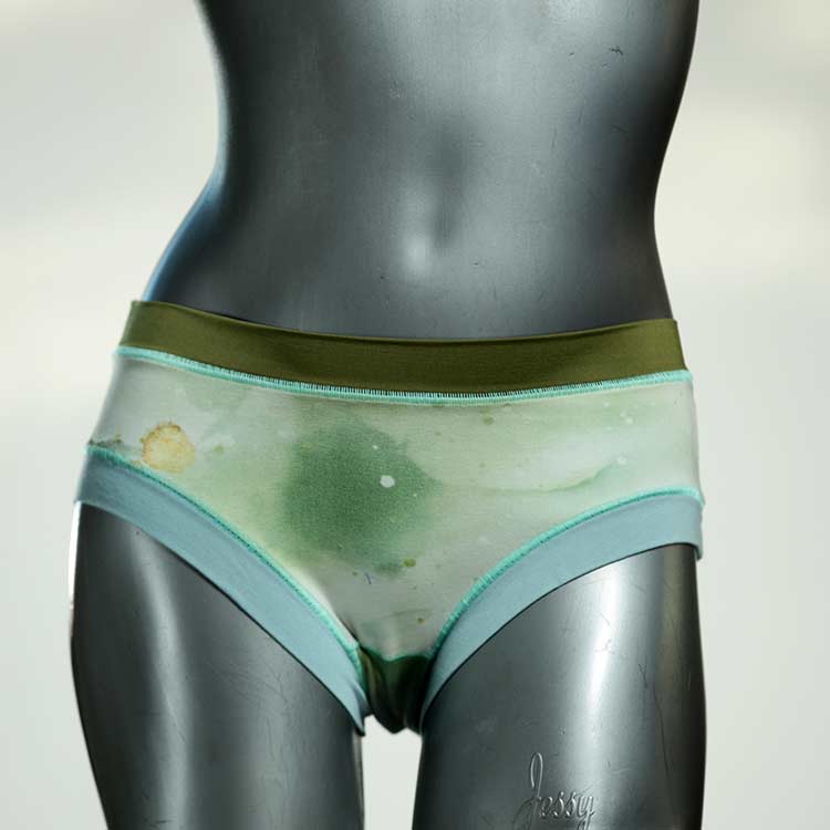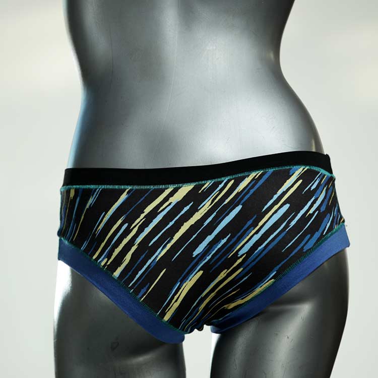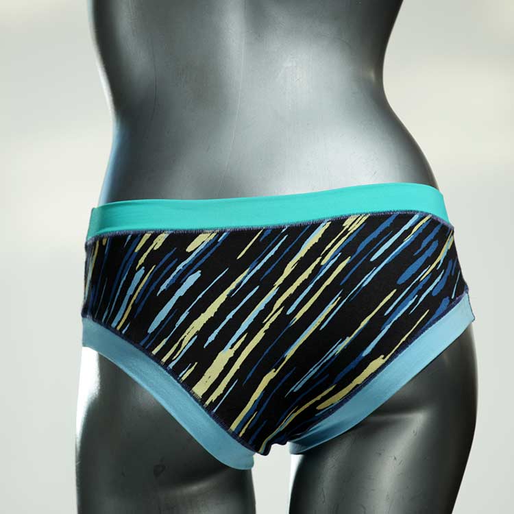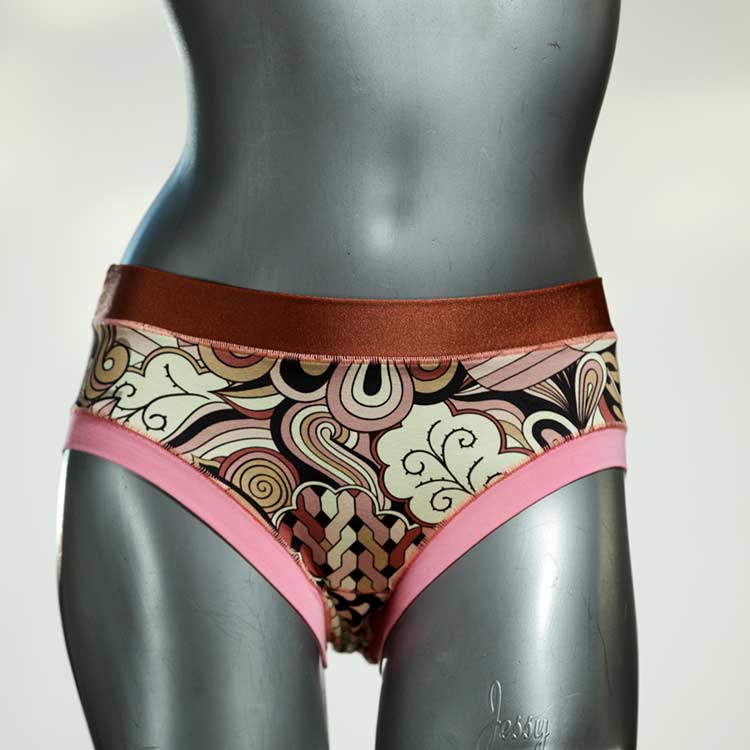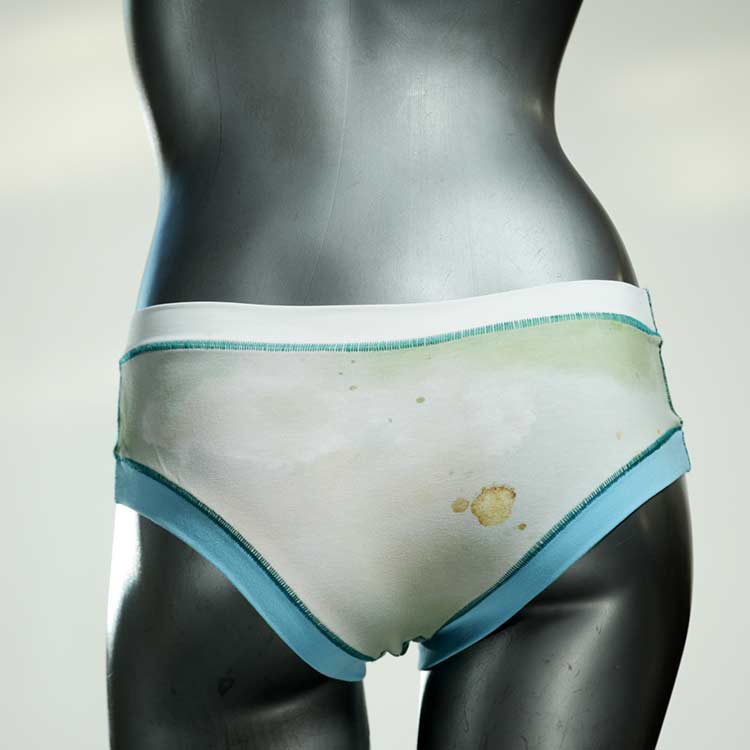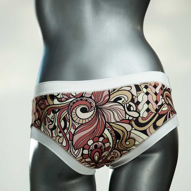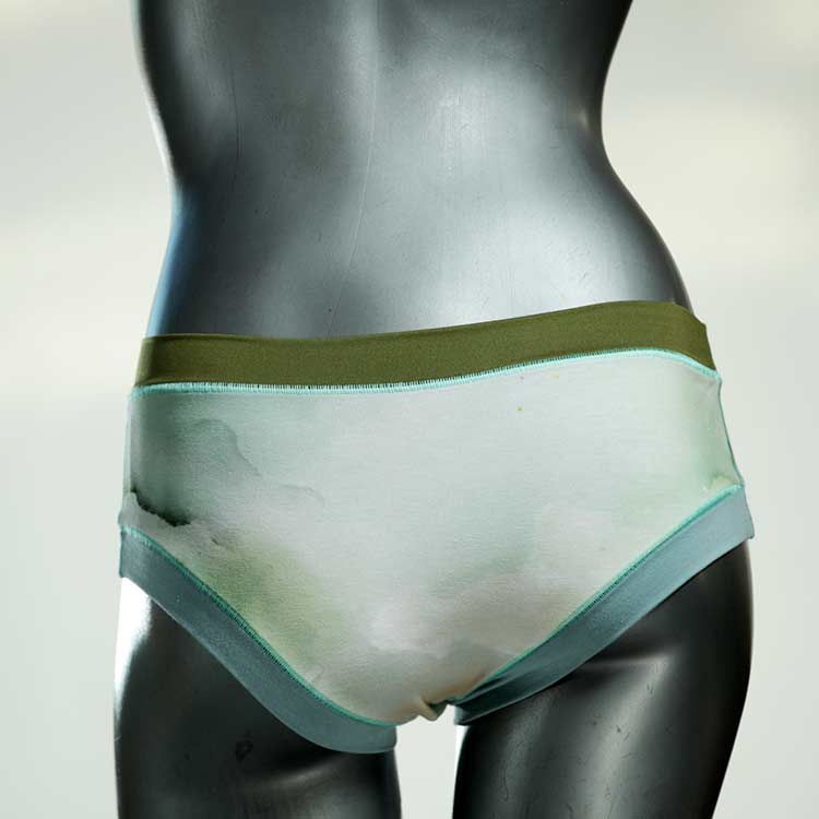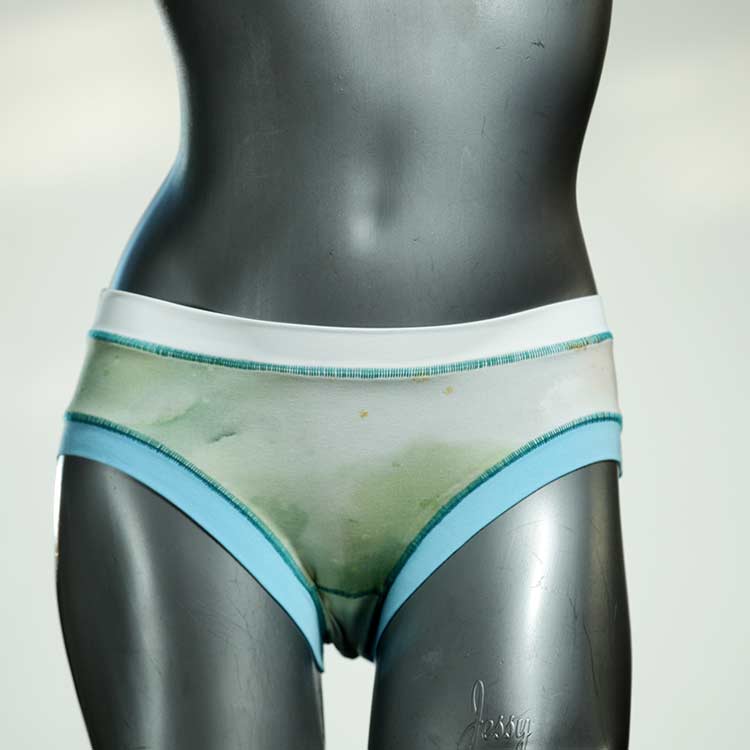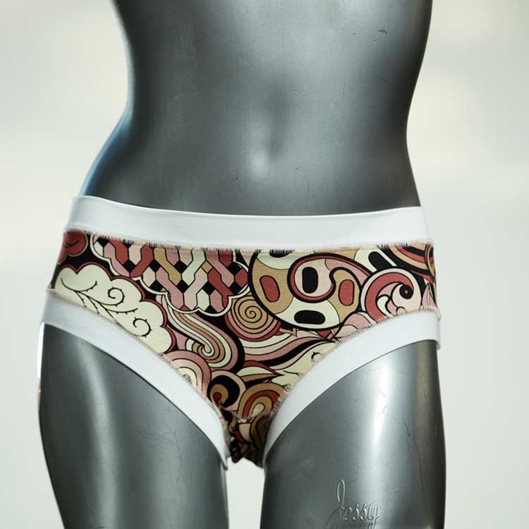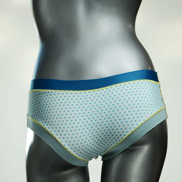 Diese süßen, bequemen Panties aus weicher Biobaumwolle sind echte Einzelstücke und werden in Handarbeit fair und lokal hergestellt. Hautfreundlich, atmungsaktiv und sehr angenehm zu tragen. Bedeckt den Po halb bzw. brazilina-mäßig, ist aber genau breit genug um nicht zu verklemmen. Bio-vegane sexy, retro Biopanties made in Berlin.