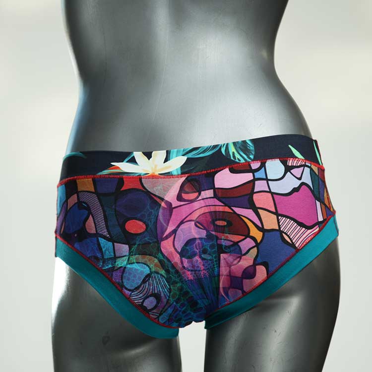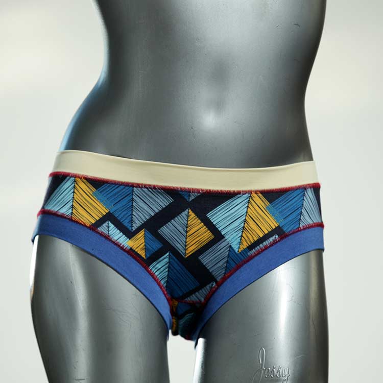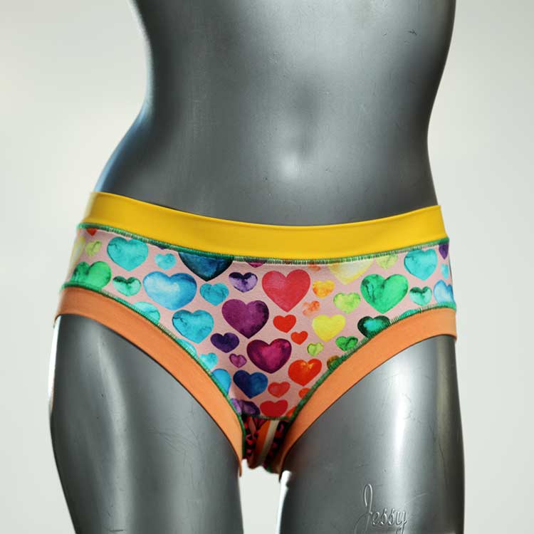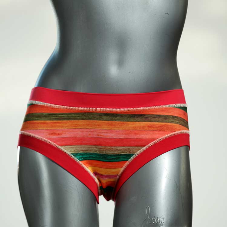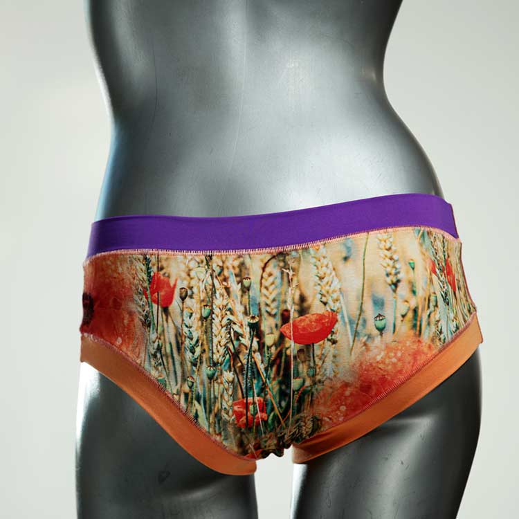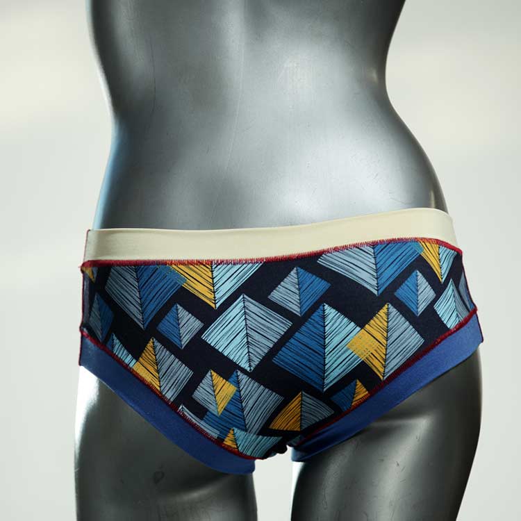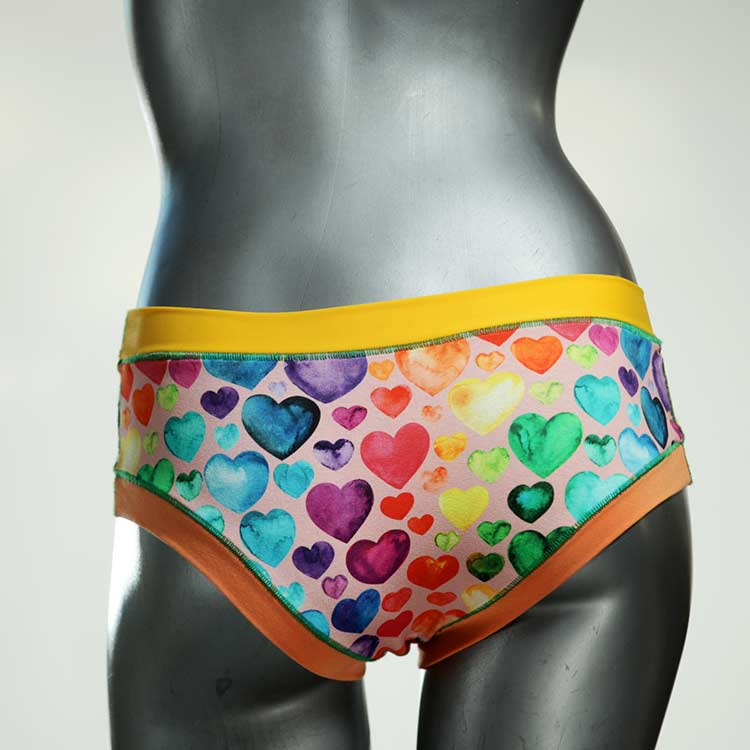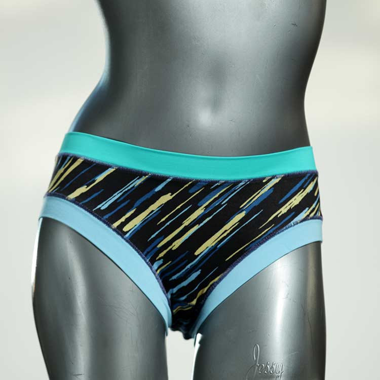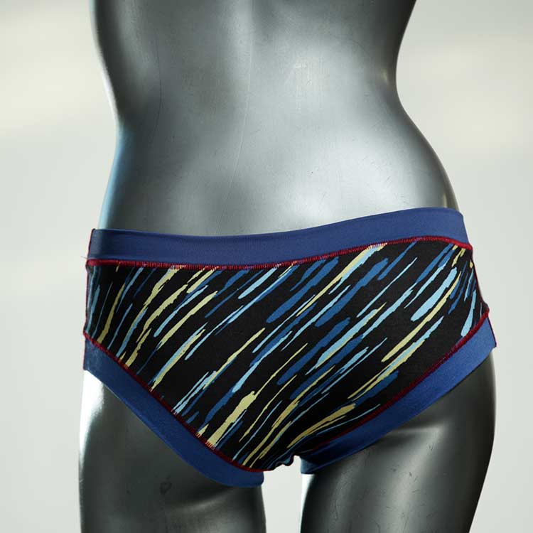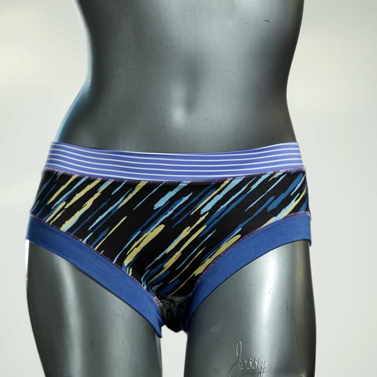 Diese süßen, bequemen Panties aus weicher Biobaumwolle sind echte Einzelstücke und werden in Handarbeit fair und lokal hergestellt. Hautfreundlich, atmungsaktiv und sehr angenehm zu tragen. Bedeckt den Po halb bzw. brazilina-mäßig, ist aber genau breit genug um nicht zu verklemmen. Bio-vegane sexy, retro Biopanties made in Berlin.