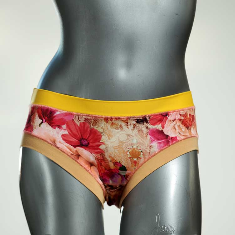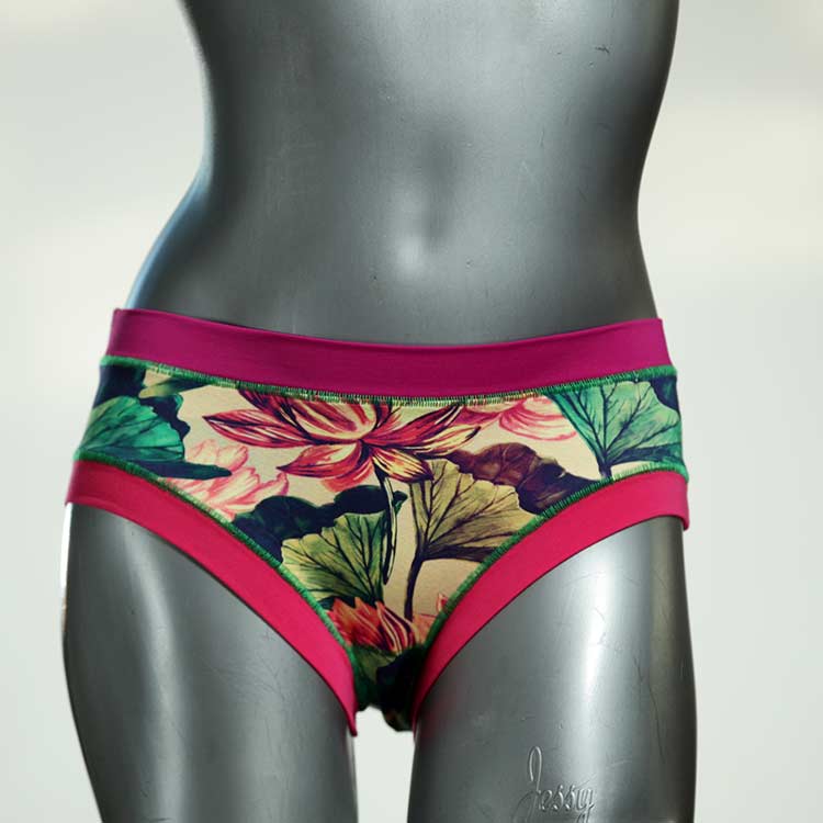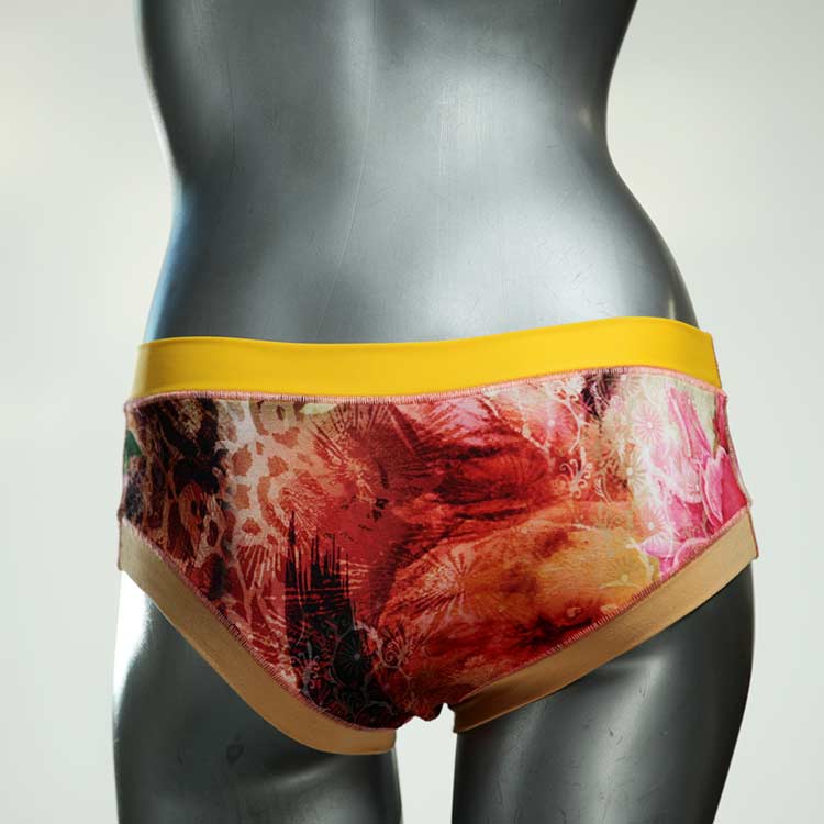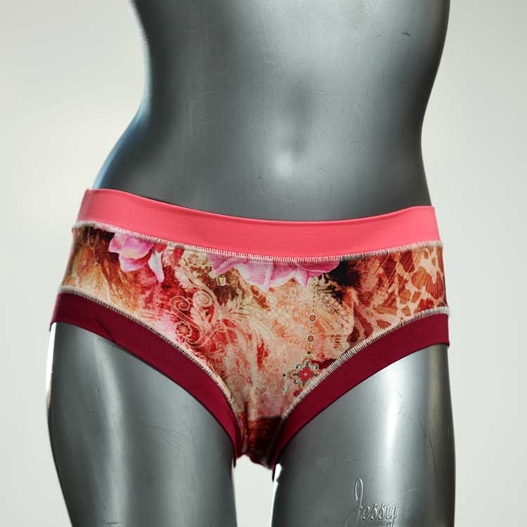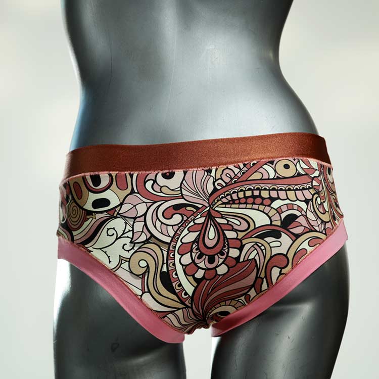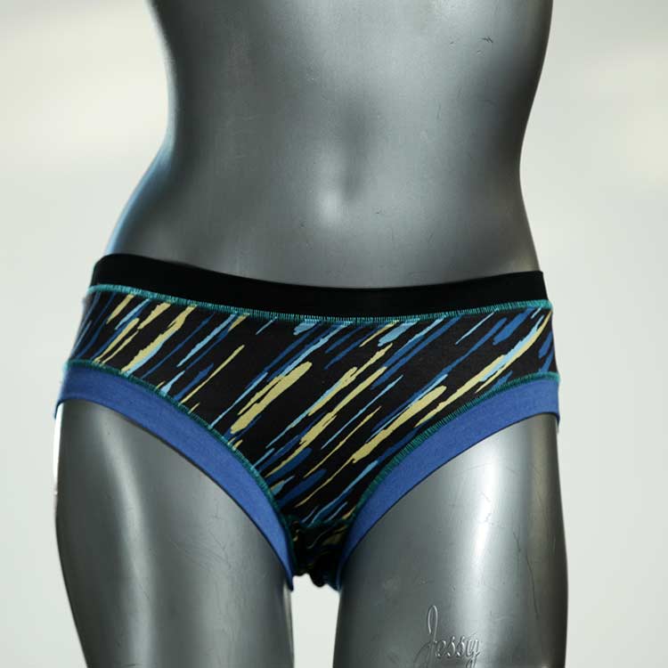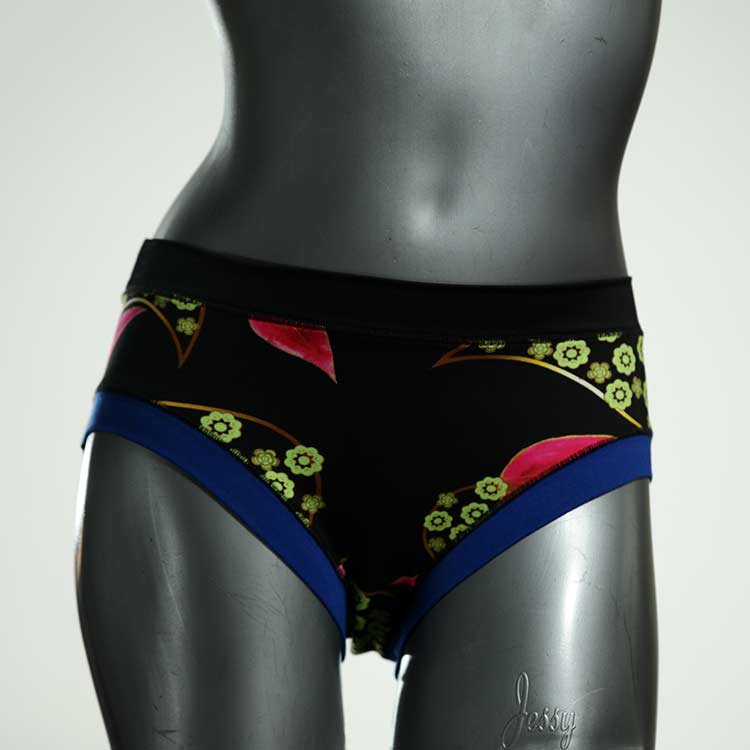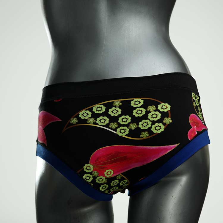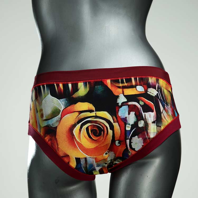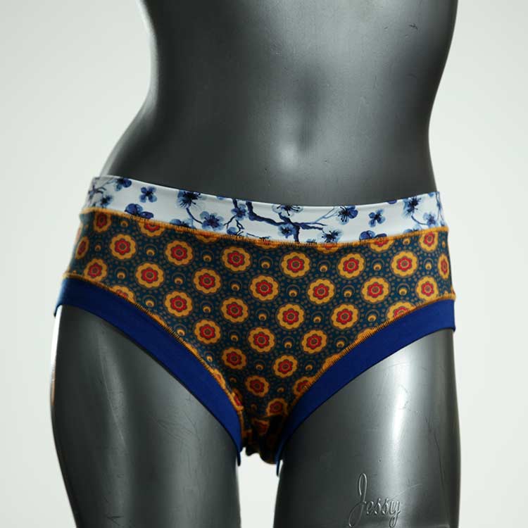 Diese süßen, bequemen Panties aus weicher Biobaumwolle sind echte Einzelstücke und werden in Handarbeit fair und lokal hergestellt. Hautfreundlich, atmungsaktiv und sehr angenehm zu tragen. Bedeckt den Po halb bzw. brazilina-mäßig, ist aber genau breit genug um nicht zu verklemmen. Bio-vegane sexy, retro Biopanties made in Berlin.