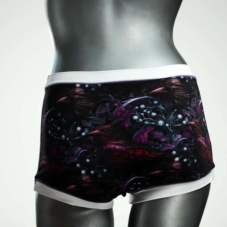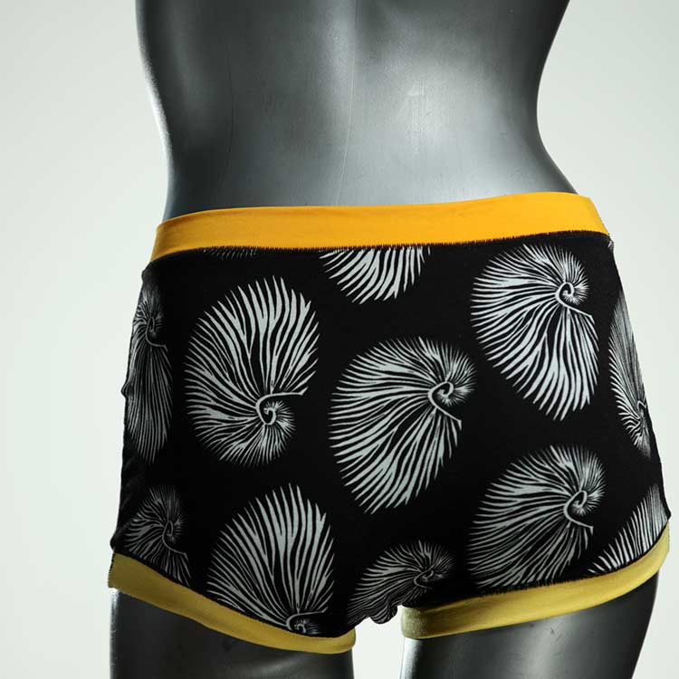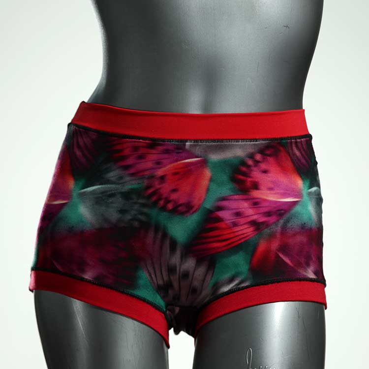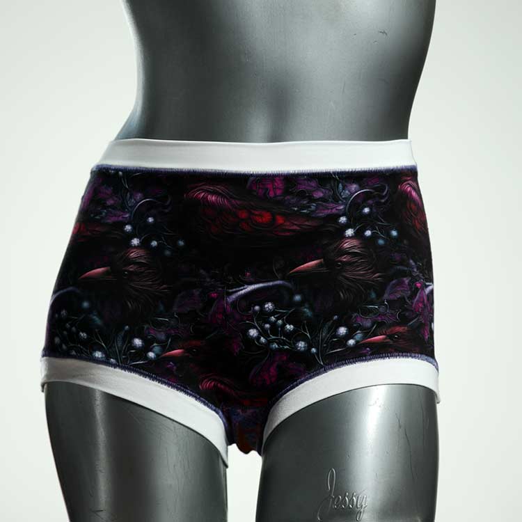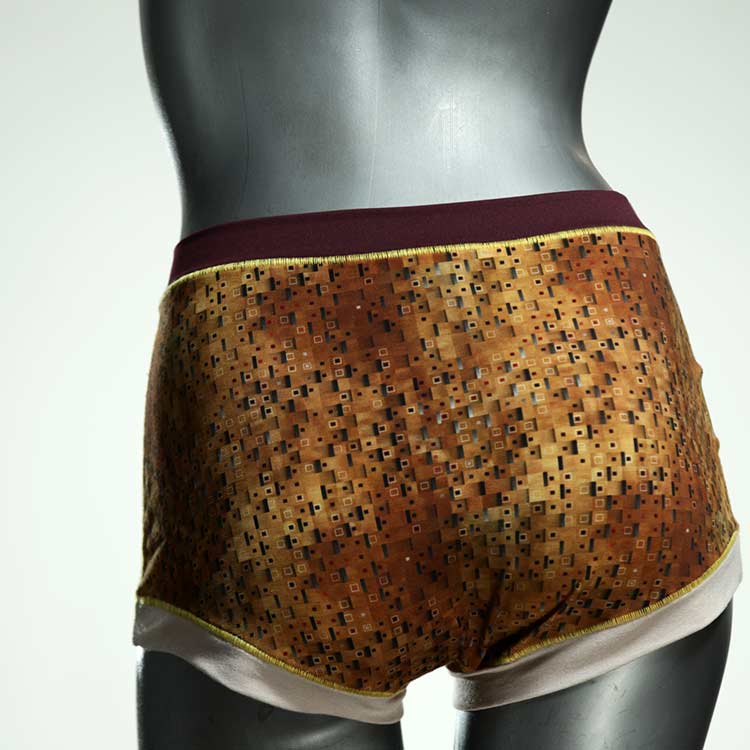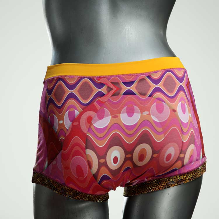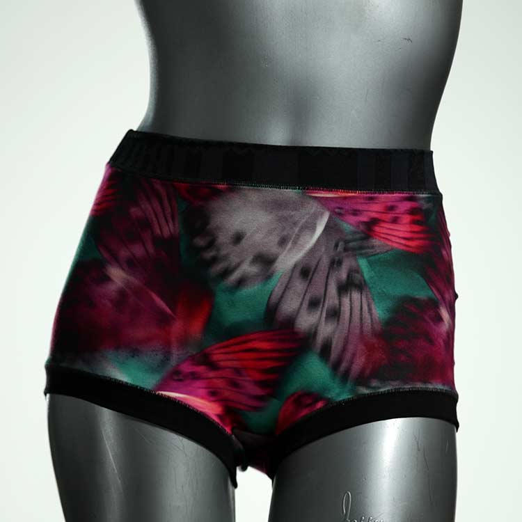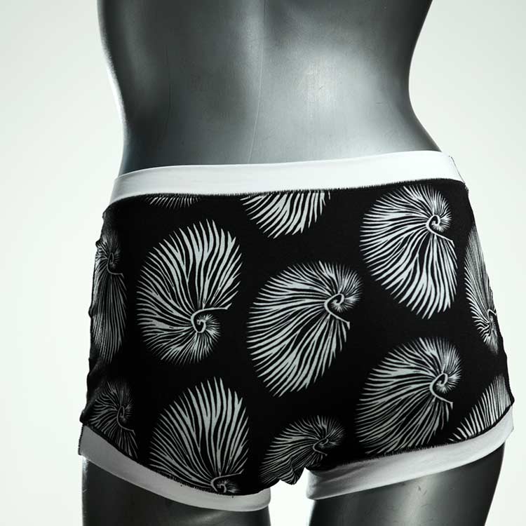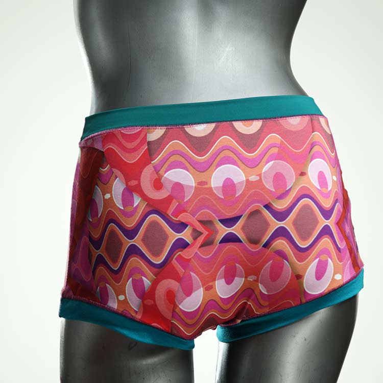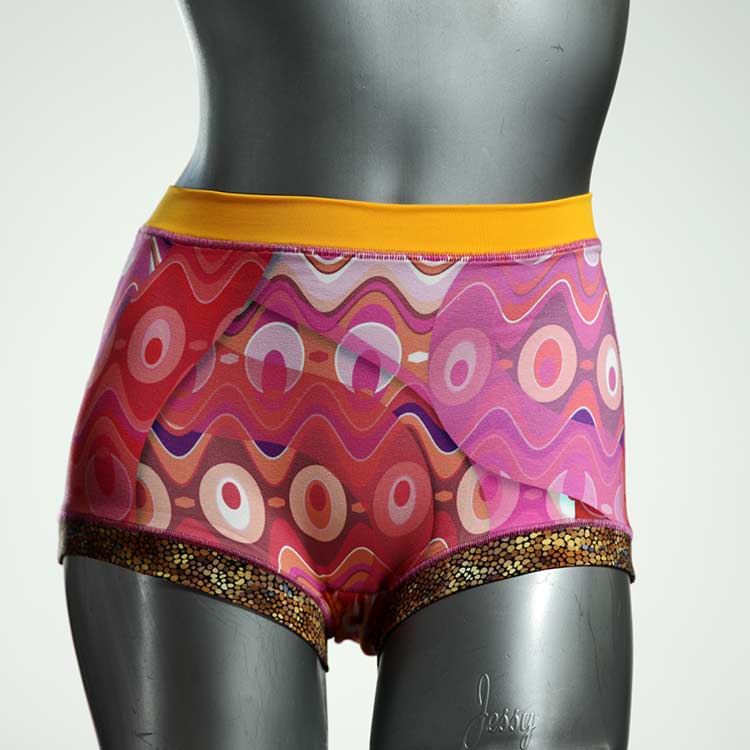 Diese besonders hoch geschnittenen Hotpants wurden oft nachgefragt und haben wir jetzt neu im Angebot. Echte Unikate aus Handarbeit, made in Berlin. Aus weichem und elastischem Baumwolljersey ohne klemmende Gummis. Bedeckt den Po vollständig und klemmt sich nirgends ein. Hautfreundlich und sehr bequem.