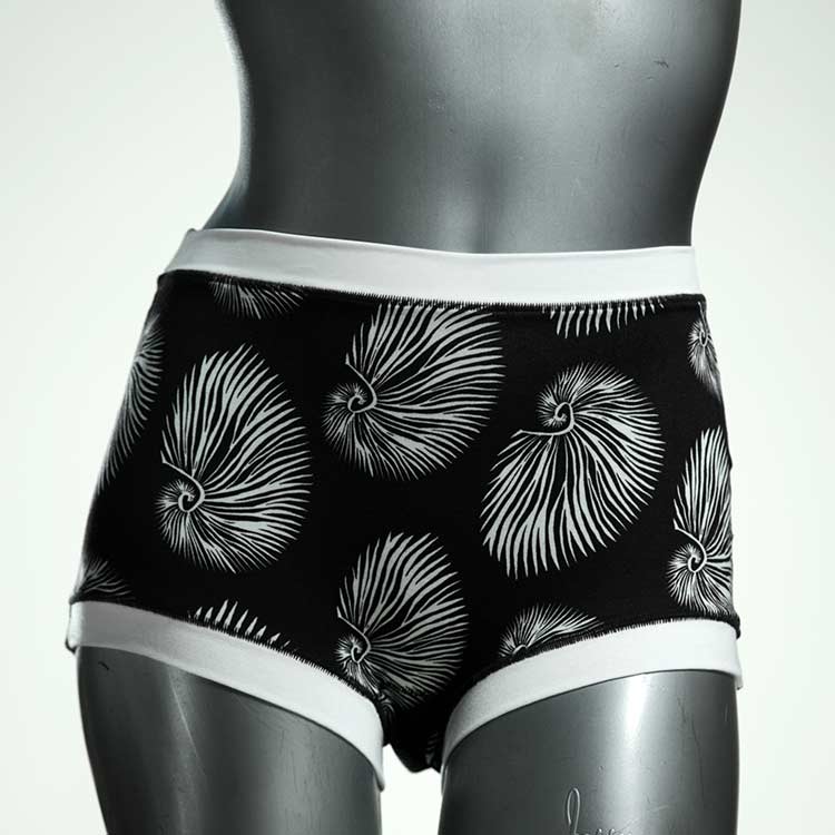 Diese schöne und bequeme highwaist Hotpant aus Baumwolle gibt es nur einmal und sie wurde in unserem Atelier in Berlin für Sie zugeschnitten, entworfen und genäht. Wir erschaffen täglich neue Unterwäsche-Einzelstücke aus weichen kunterbunten Baumwoll-Jerseys.