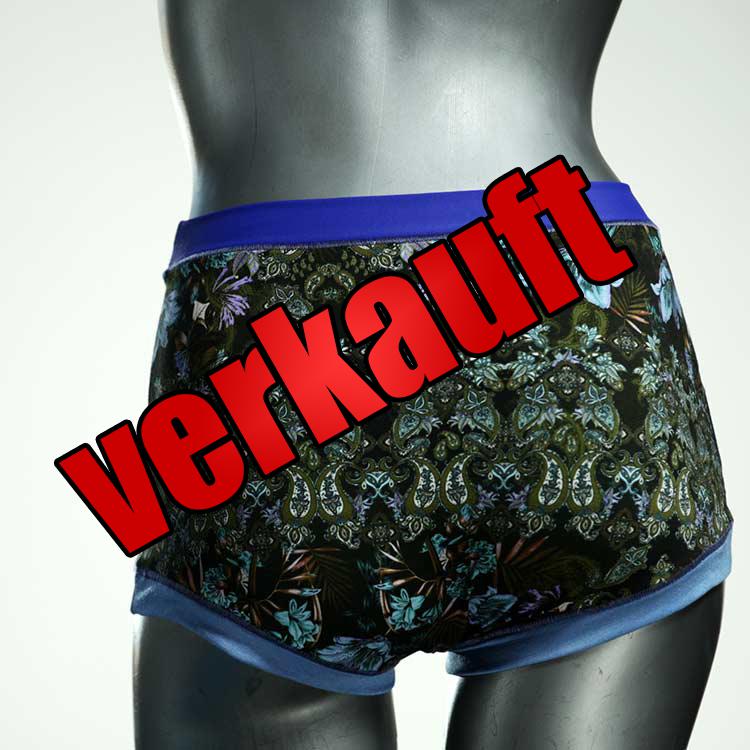 Diese besonders hoch geschnittenen Hotpants wurden oft nachgefragt und haben wir jetzt neu im Angebot. Echte Unikate aus Handarbeit, made in Berlin. Aus weichem und elastischem Baumwolljersey ohne klemmende Gummis. Bedeckt den Po vollständig und klemmt sich nirgends ein. Hautfreundlich und sehr bequem.