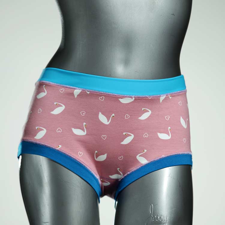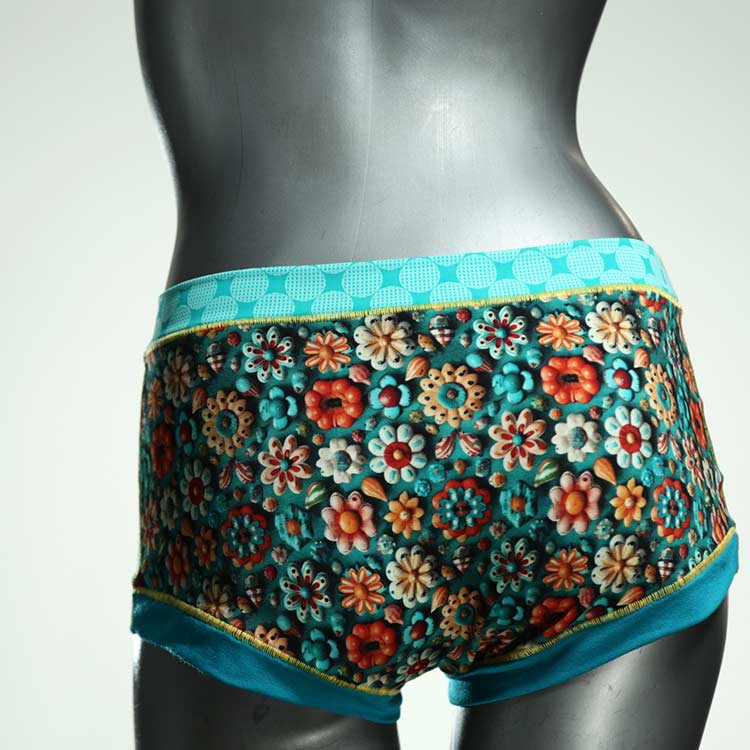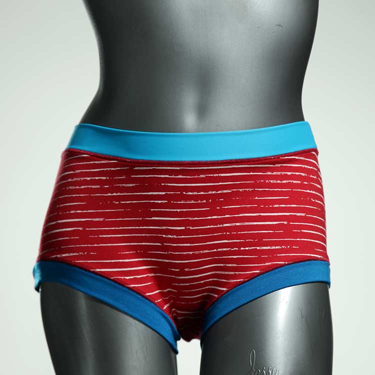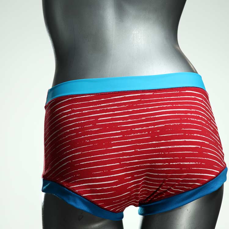 Hotpants sind gleich nach den Panties unser Bestseller. Echte Unikate aus Handarbeit, made in Berlin. Sind sind relativ breit geschnitten und aus weichem und elastischem Baumwolljersey ohne klemmende Gummis. Bedeckt den Po -je nach Person- vollständig und klemmt sich nirgends ein. Ähnlich Boyshort. Hautfreundlich und sehr bequem.