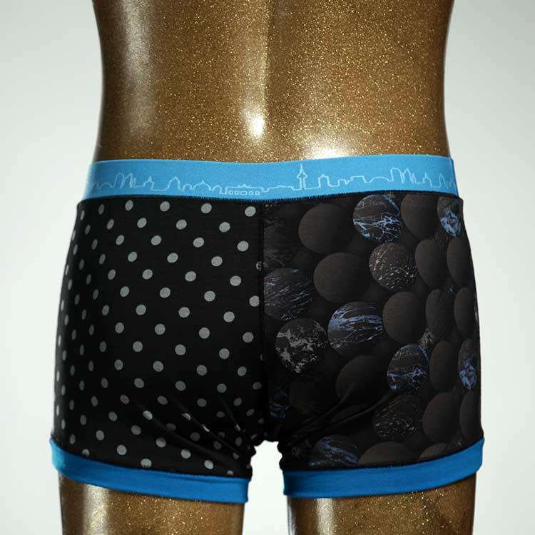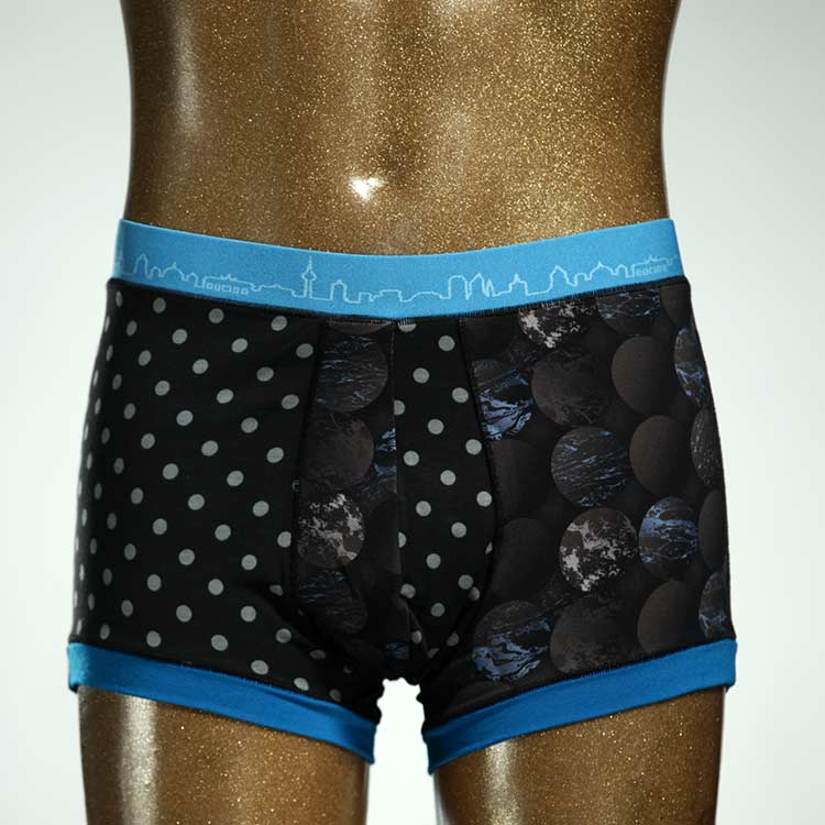 Diese schöne und bequeme Herrenshort aus Baumwolle ist ein echtes Unikat und wurde in unserem Atelier in Berlin für Sie zugeschnitten, entworfen und genäht. Wir erschaffen täglich neue Unterwäsche-Einzelstücke aus weichen bunten Baumwoll-Jerseys.