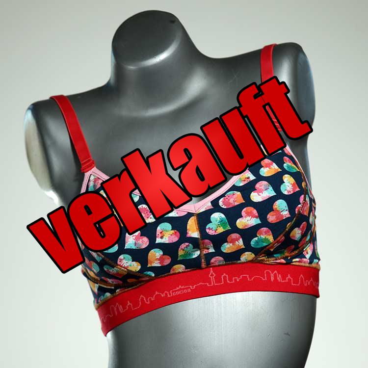 Diesen schönen und bequemen BH aus Baumwolle gibt es nur einmal und er wurde in unserem Atelier in Berlin für Sie zugeschnitten, entworfen und genäht. Wir erschaffen täglich neue Unterwäsche-Einzelstücke aus weichen kunterbunten Baumwoll-Jerseys.