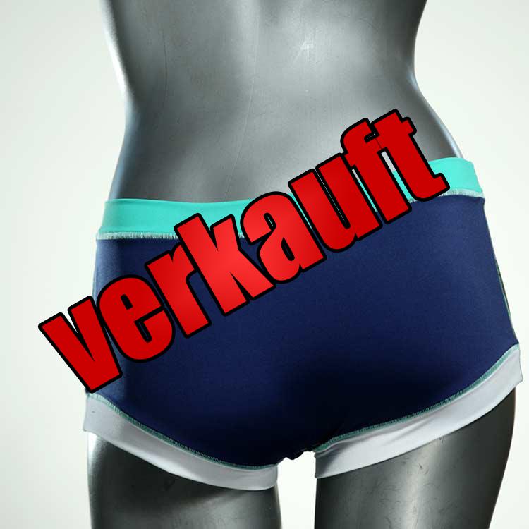 Unsere Sport-Bikinihosen sind genau breit geschnitten wie die Hotpants, sitzen genauso gut und verrutschen nicht. Das Material ist Lycra aus Barcelona. Vorne haben Sie ein hochwertiges Badefutter. Hautfreundlich und sehr angenehm zu tragen.