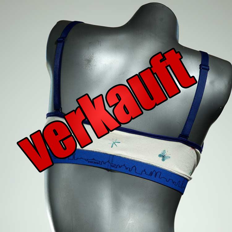 Diesen schönen und bequemen BH aus GOTS-zertifizierter Baumwolle gibt es nur einmal und er wurde in unserem Atelier in Berlin für Sie zugeschnitten, entworfen und genäht. Wir erschaffen täglich neue Unterwäsche-Einzelstücke aus weichen kunterbunten Baumwoll-Jerseys.