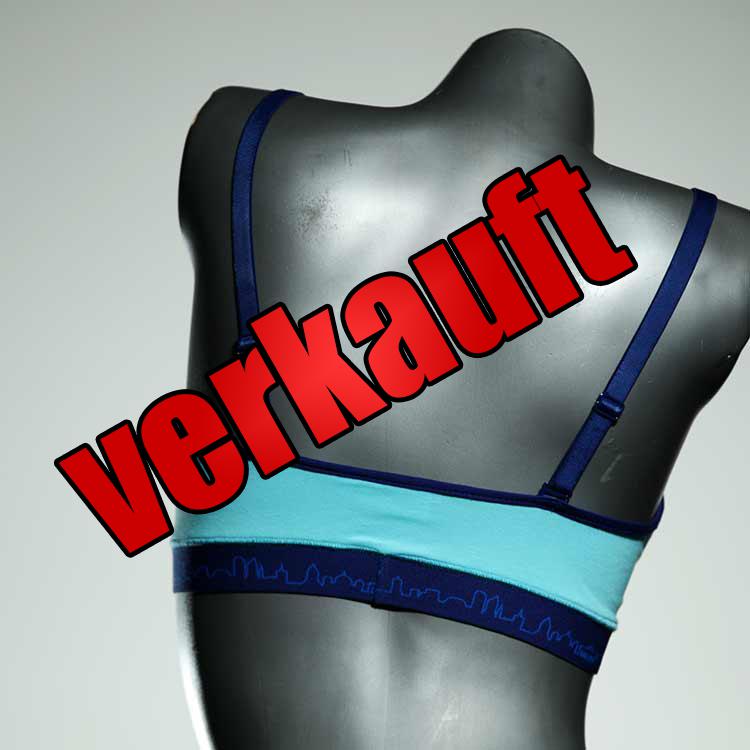 Diesen schönen und bequemen BH aus GOTS-zertifizierter Baumwolle gibt es nur einmal und er wurde in unserem Atelier in Berlin für Sie zugeschnitten, entworfen und genäht. Wir erschaffen täglich neue Unterwäsche-Einzelstücke aus weichen kunterbunten Baumwoll-Jerseys.