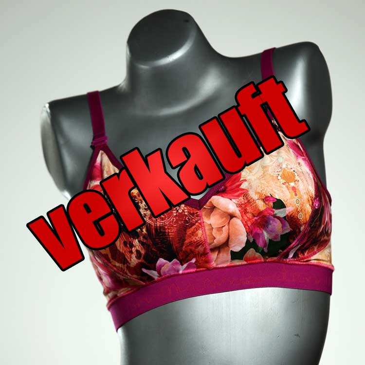 Diesen schönen und bequemen BH aus GOTS-zertifizierter Baumwolle gibt es nur einmal und er wurde in unserem Atelier in Berlin für Sie zugeschnitten, entworfen und genäht. Wir erschaffen täglich neue Unterwäsche-Einzelstücke aus weichen kunterbunten Baumwoll-Jerseys.