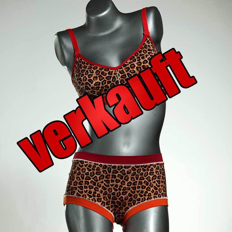 Einzigartiges Ensemble aus BH mit doppellagigem und atmungsaktivem Biobaumwolljersey mit 16mm breiten Trägern und passendem Höschen. Bequem, fair und nachhaltig hergestelltes Unterwäsche-Unikat aus unserer Manufaktur. BH ohne Bügel, Kissen oder Verschluss.
