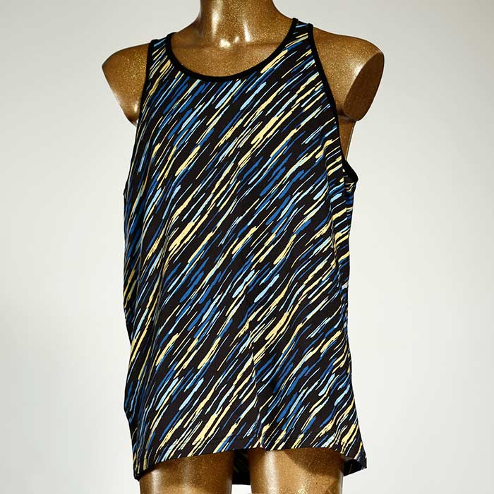 Bequemes und universell einsetzbares Herrenunterhemd aus fetzig-bunter, weicher und GOTS-zertifizierter Biobaumwolle. Echte Hingucker und Einzelstücke aus Handarbeit.