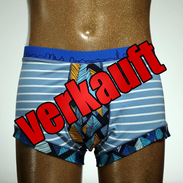 Diese Herrenshorts aus weicher und elastischer GOTS-zertifizierter Biobaumwolle für Herren sind ein Kompromiss zwischen Slip und Boxershort. Ein tatsächliches Unikat aus Handarbeit, made in Berlin, ohne klemmende Gummis an den Beinen. Bedeckt den Po komplett, hautfreundlich und überaus angenehm zu tragen.