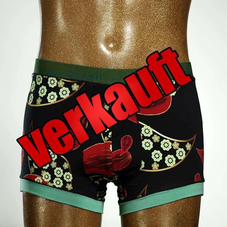 Diese schöne und bequeme Herrenshort aus GOTS-zertifizierter Biobaumwolle ist ein echtes Unikat und wurde in unserem Atelier in Berlin für Sie zugeschnitten, entworfen und genäht. Wir erschaffen täglich neue Unterwäsche-Einzelstücke aus weichen bunten Baumwoll-Jerseys.