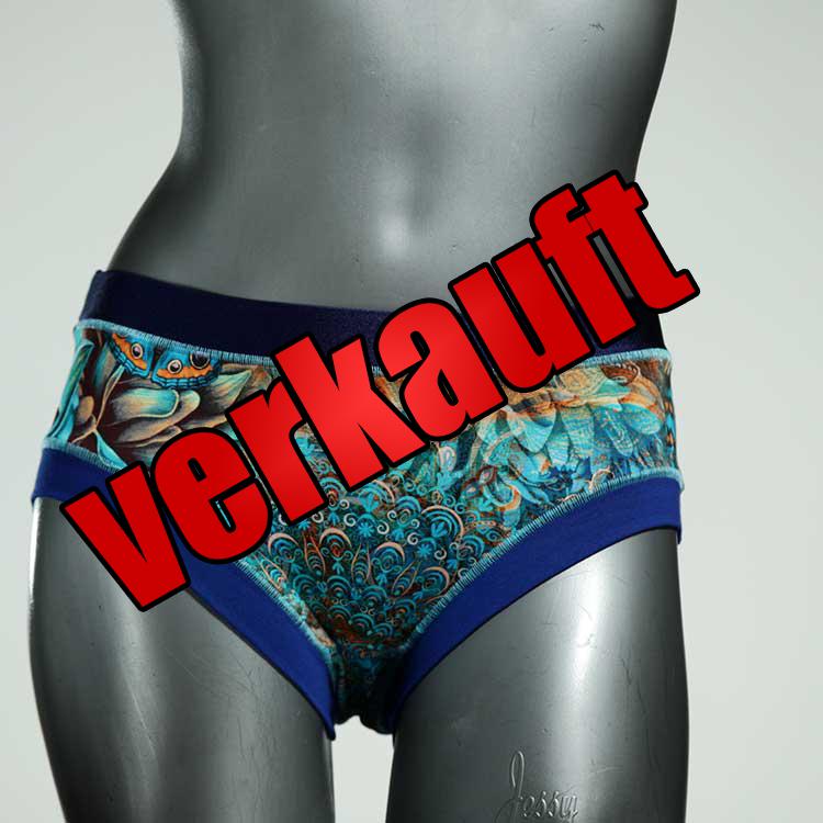 Für den einen sind es Panties, für den anderen Hipster oder Slips, da gibt es keine einheitliche Regelung. Wir sagen Panties zu den schmaleren Höschen und Hotpants zu den breiteren. Die Passform haben wir über Jahre in Absprache mit unseren Kundinnen immer wieder ein wenig verbessert. Wir versuchen ein breites Spektrum von Designs abzudecken, von Blumenmotiven bis zu geometrischen Mustern. Wenn Sie ihren Kleinderschrank etwas aufpeppen möchten, wären diese Unterhosen ein Schritt in die richtige Richtung, denn die Panties sind nicht nur fetzige Unikate, sondern auch bio und vegan. Einfach nur Biobaumwolle aus der Levante.
