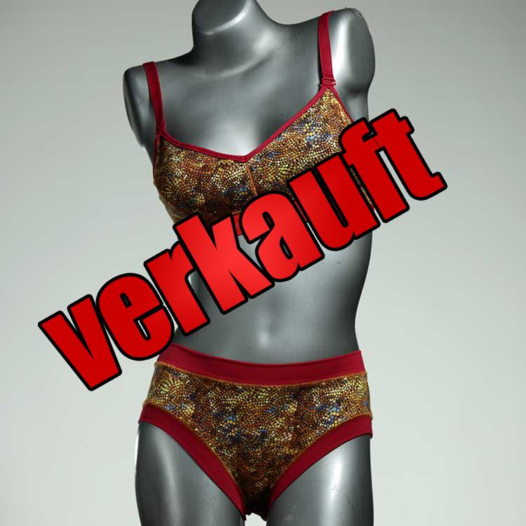 Zauberhaftes Ensemble aus BH mit doppellagigem, elastischem und atmungsaktivem Baumwolljersey und passendem Höschen mit einzigartigem Design. Ein bequemes, fair hergestelltes Unikat aus unserer Manufaktur.