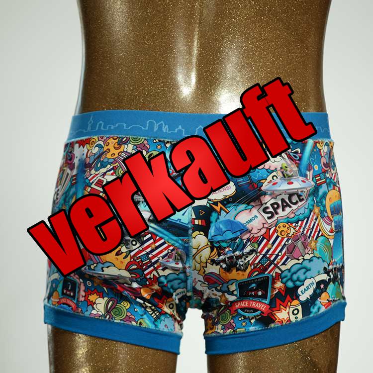 Diese schöne und bequeme Herrenshort aus Baumwolle ist ein echtes Unikat und wurde in unserem Atelier in Berlin für Sie zugeschnitten, entworfen und genäht. Wir erschaffen täglich neue Unterwäsche-Einzelstücke aus weichen bunten Baumwoll-Jerseys.