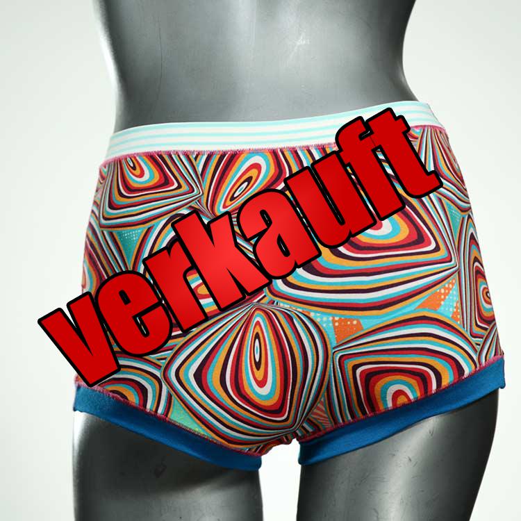 Diese schöne und bequeme highwaist Hotpant aus Baumwolle gibt es nur einmal und sie wurde in unserem Atelier in Berlin für Sie zugeschnitten, entworfen und genäht. Wir erschaffen täglich neue Unterwäsche-Einzelstücke aus weichen kunterbunten Baumwoll-Jerseys.