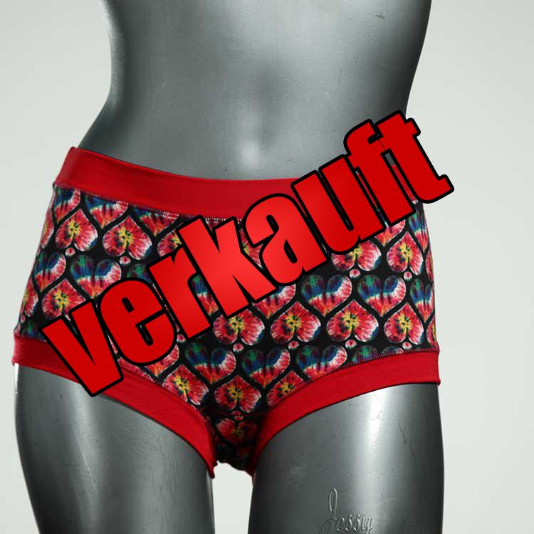 Hotpants sind gleich nach den Panties unser beliebtesten Produkte. Echte Unikate aus Handarbeit, made in Berlin. Sind sind relativ breit geschnitten und aus weichem, elastischem und hautfreundlichem Baumwolljersey ohne störende Gummis. Sie bedecken den Po vollständig und klemmen sich nirgends ein.