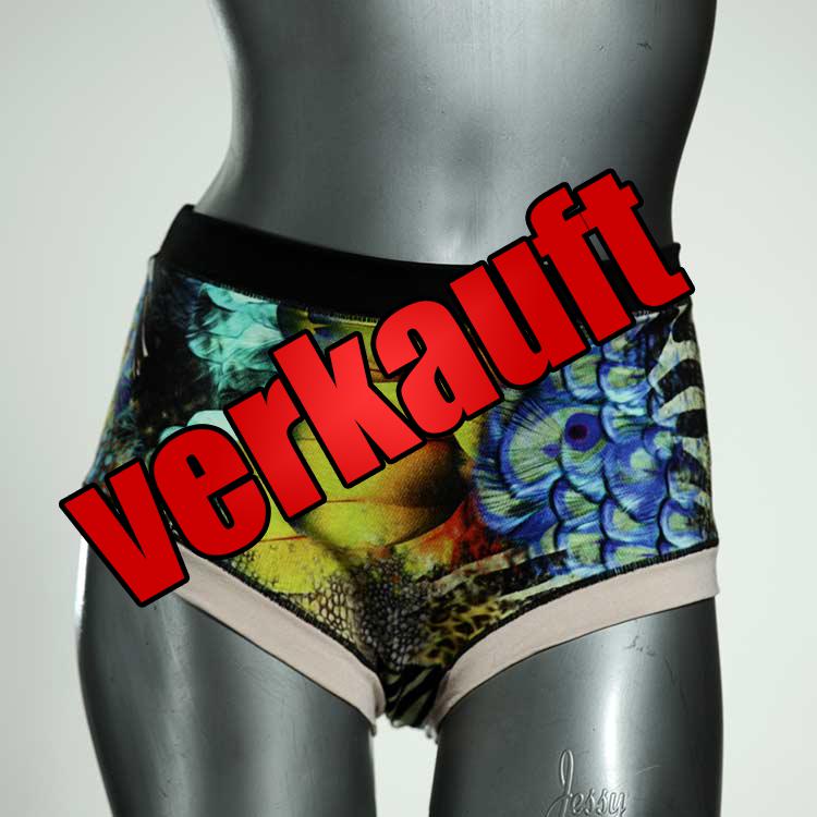Hotpants sind gleich nach den Panties unser beliebtesten Produkte. Echte Unikate aus Handarbeit, made in Berlin. Sind sind relativ breit geschnitten und aus weichem, elastischem und hautfreundlichem Baumwolljersey ohne störende Gummis. Sie bedecken den Po vollständig und klemmen sich nirgends ein.