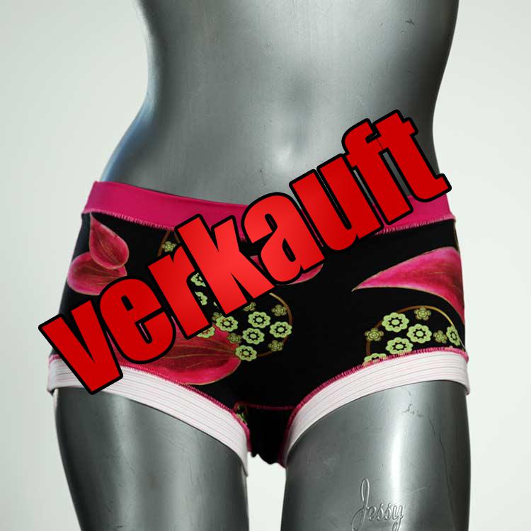 Hotpants sind gleich nach den Panties unser beliebtesten Produkte. Echte Unikate aus Handarbeit, made in Berlin. Sind sind relativ breit geschnitten und aus weichem, elastischem und hautfreundlichem Baumwolljersey ohne störende Gummis. Sie bedecken den Po vollständig und klemmen sich nirgends ein.