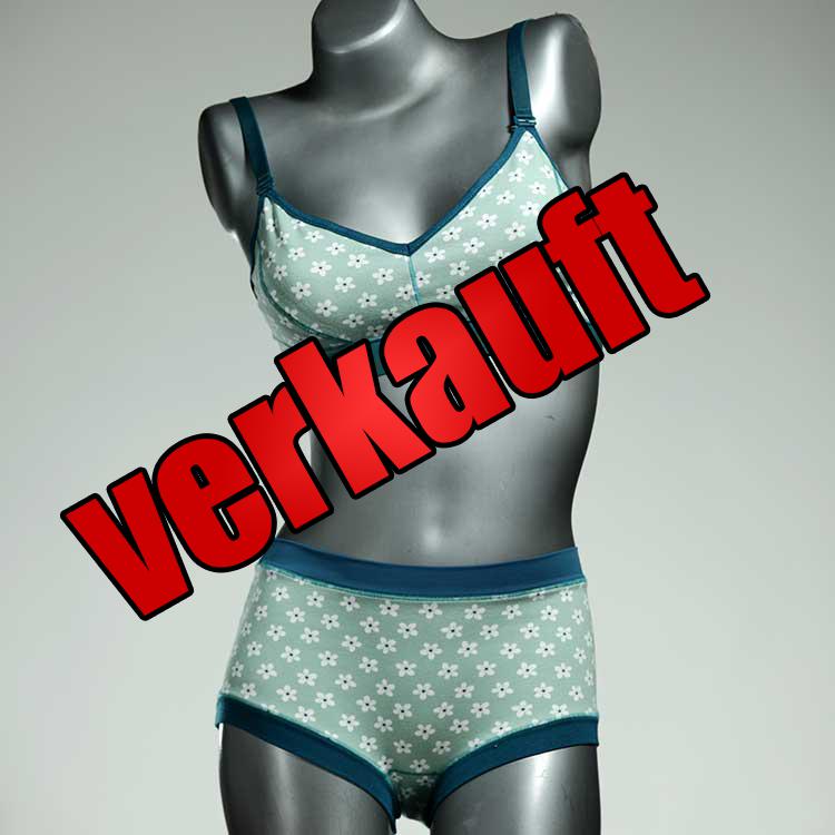 Zauberhaftes Ensemble aus BH mit doppellagigem, elastischem und atmungsaktivem Baumwolljersey und passendem Höschen mit einzigartigem Design. Ein bequemes, fair hergestelltes Unikat aus unserer Manufaktur.