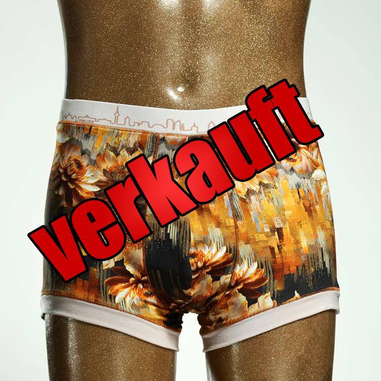 Diese schöne und bequeme Herrenshort aus Baumwolle ist ein echtes Unikat und wurde in unserem Atelier in Berlin für Sie zugeschnitten, entworfen und genäht. Wir erschaffen täglich neue Unterwäsche-Einzelstücke aus weichen bunten Baumwoll-Jerseys.