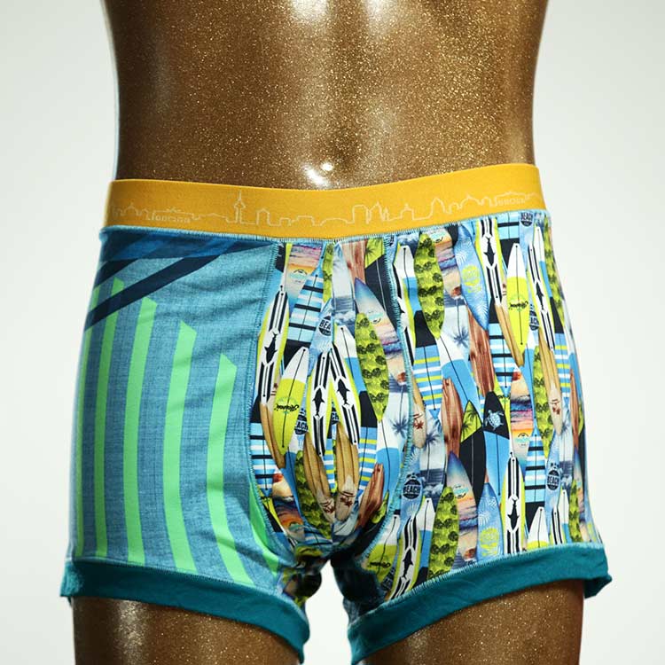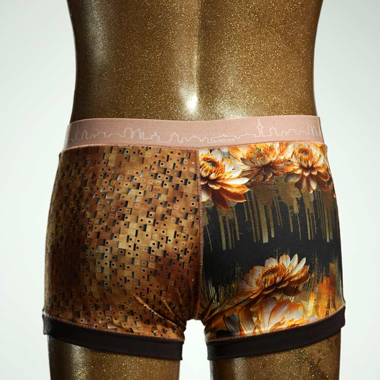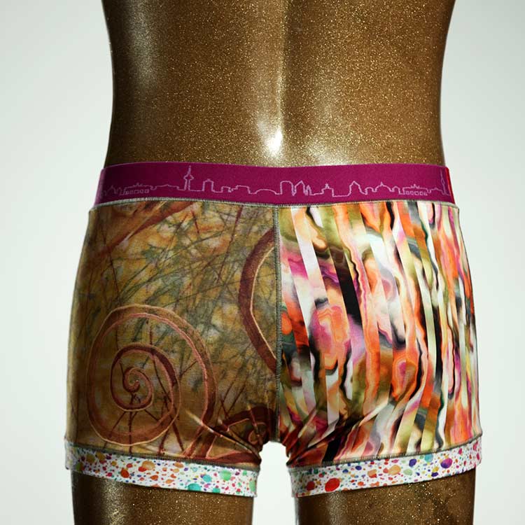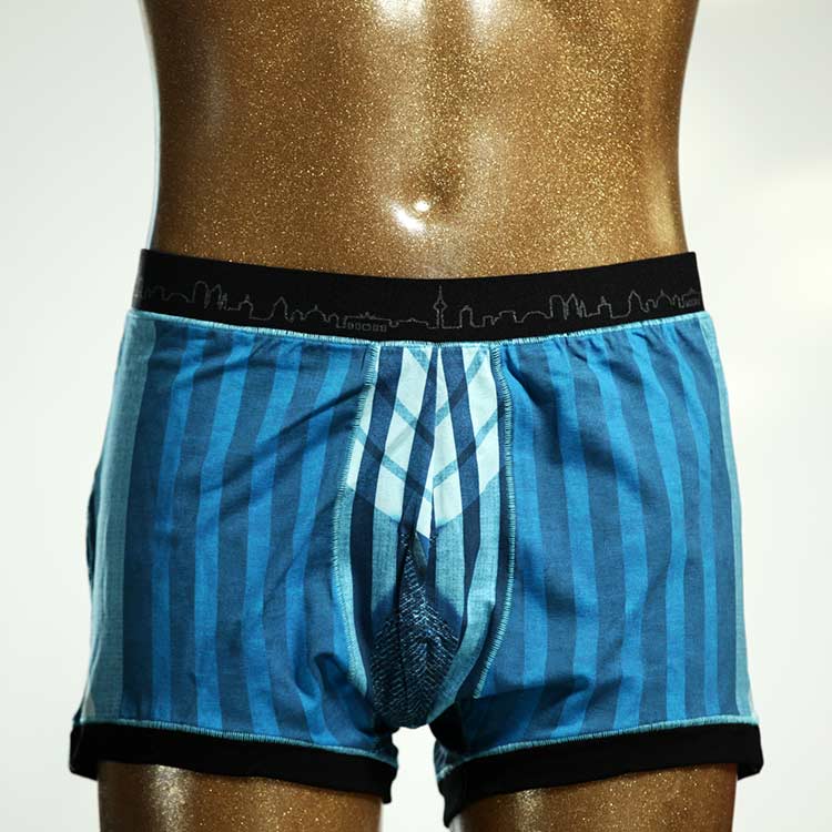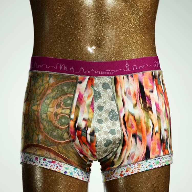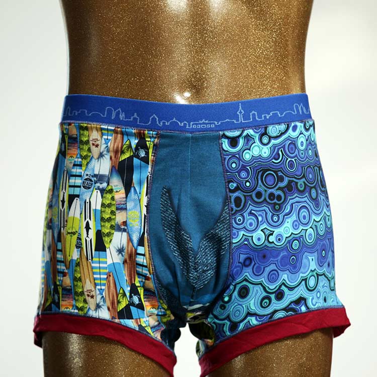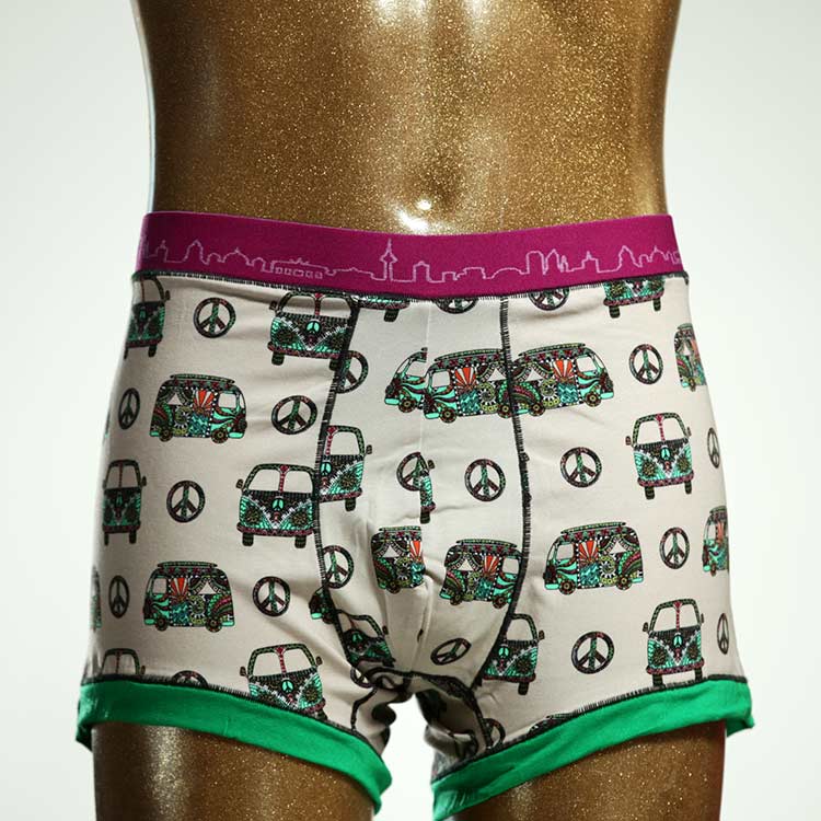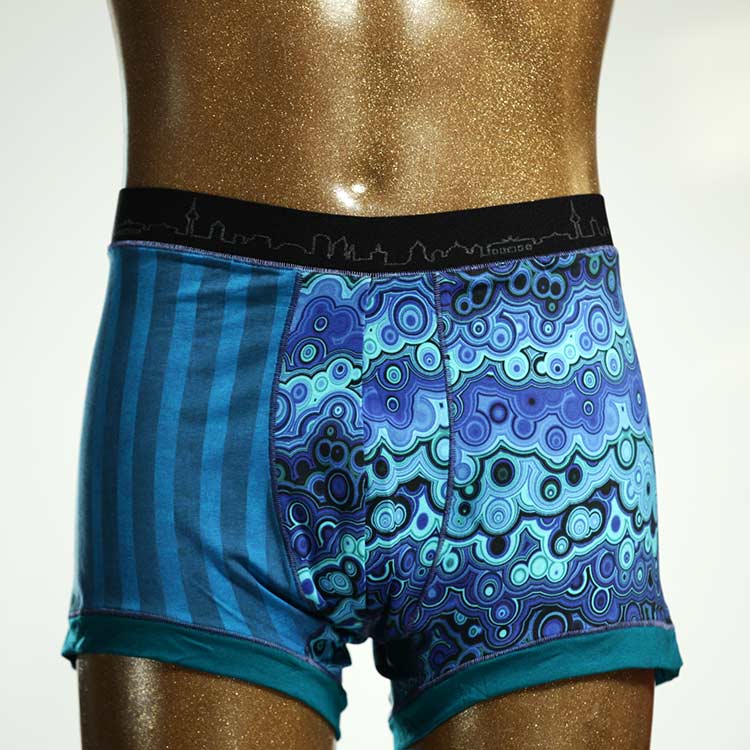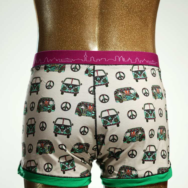 Estos calzoncillos son piezas realmente únicas y no tienen elásticos en las piernas y quedan sueltos y ofrecen suficiente espacio debajo. Hecho de material natural suave, transpirable y elástico, cómodo de llevar e interior de algodón orgánico.