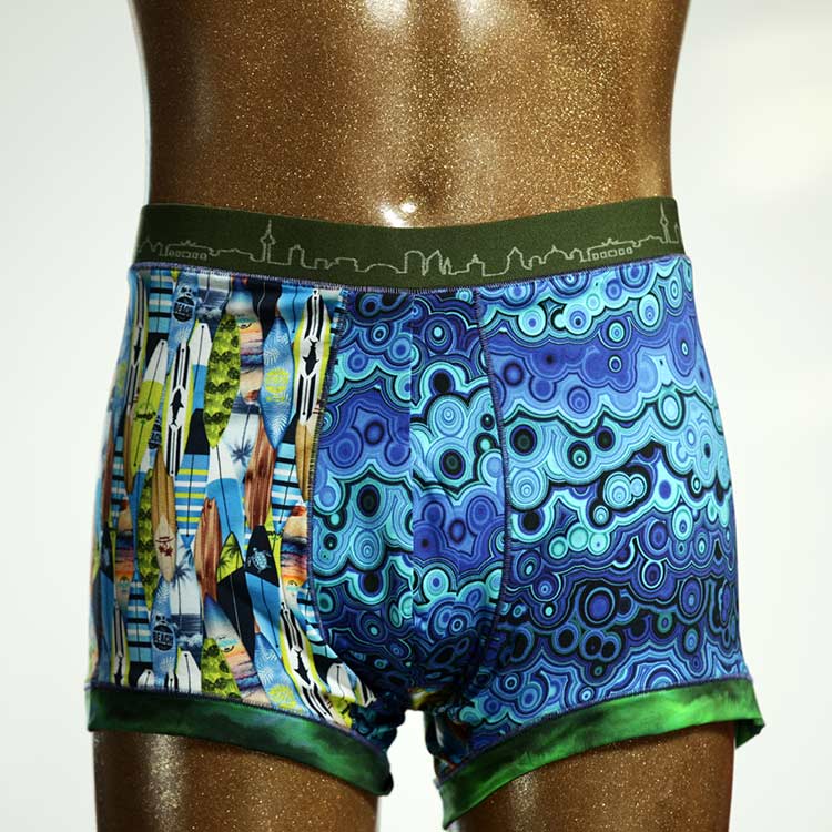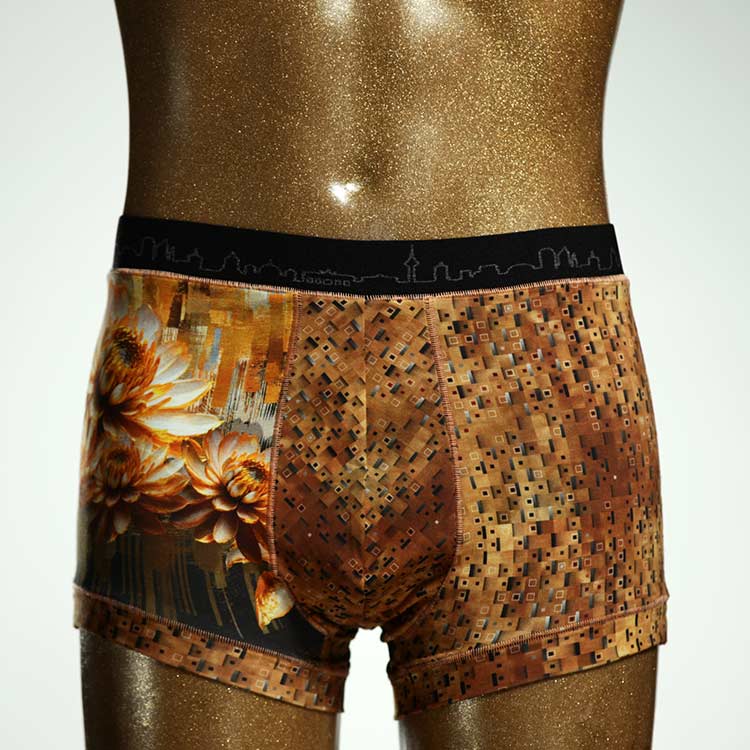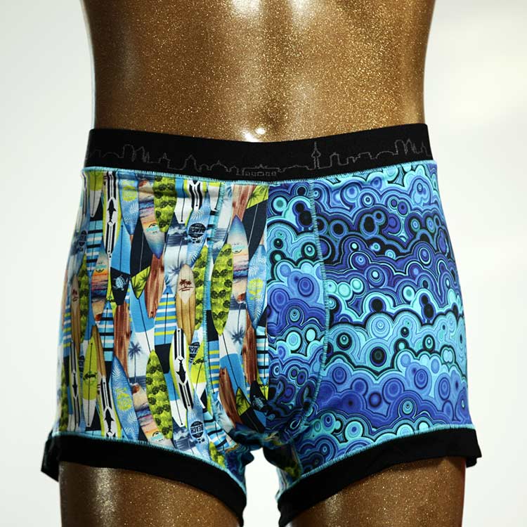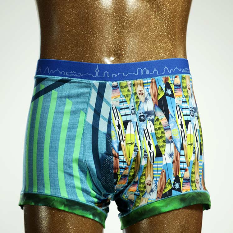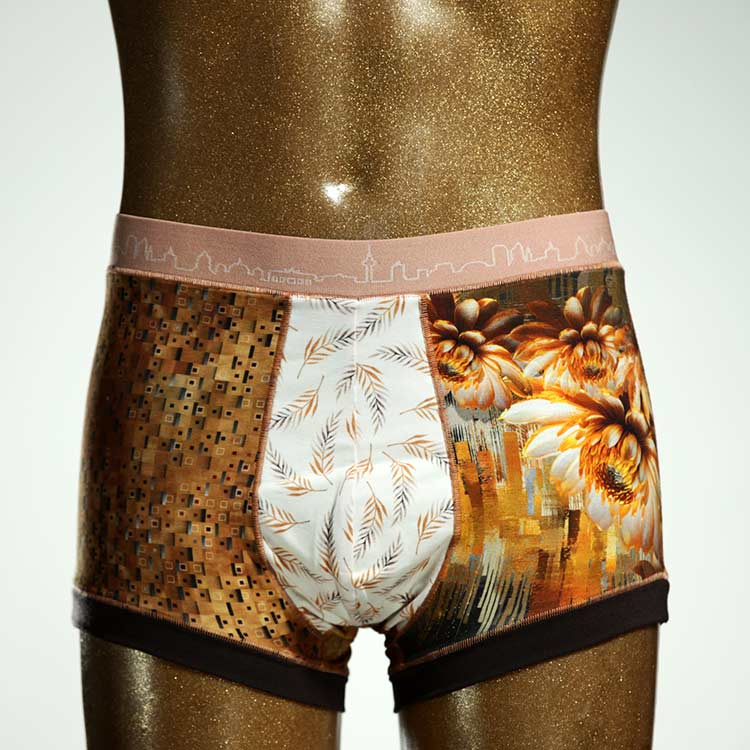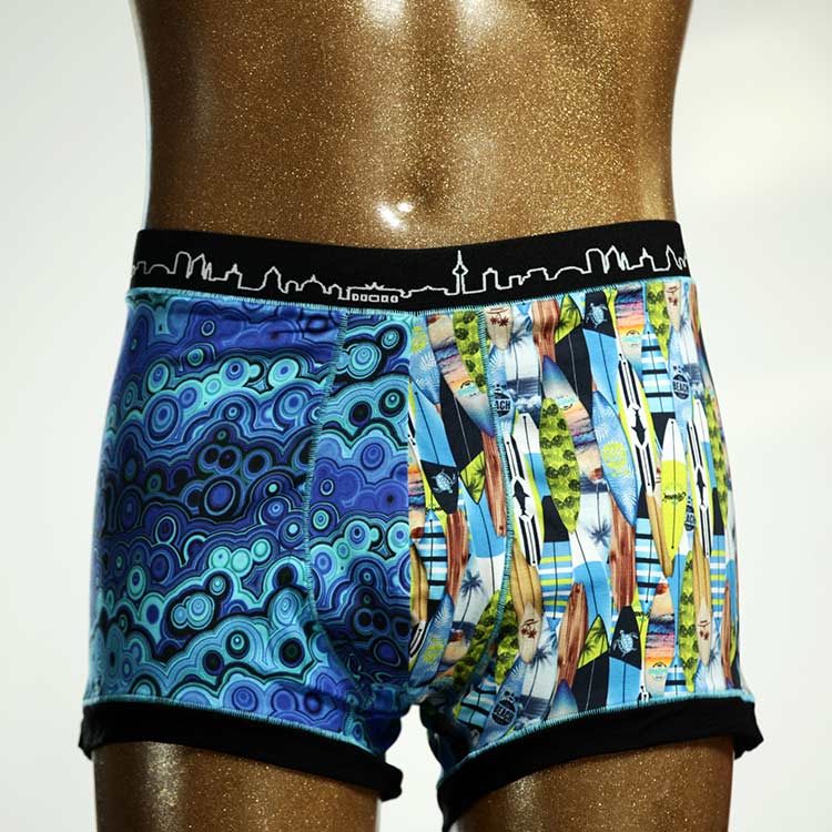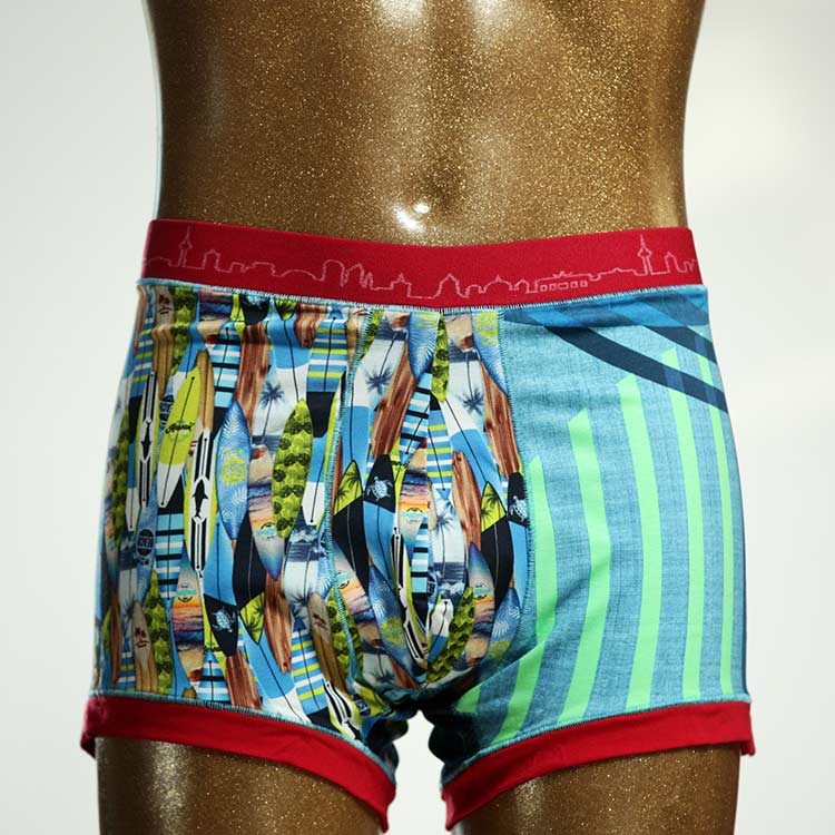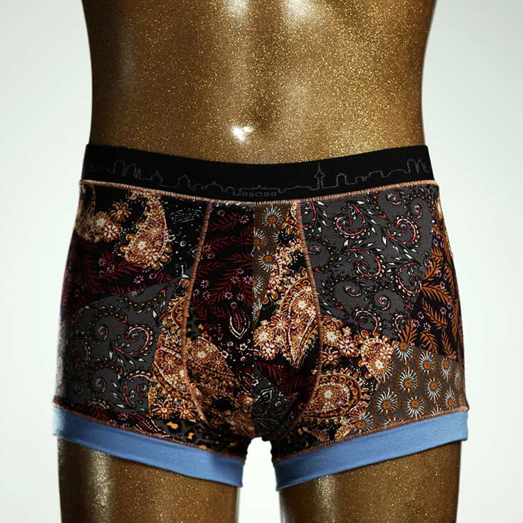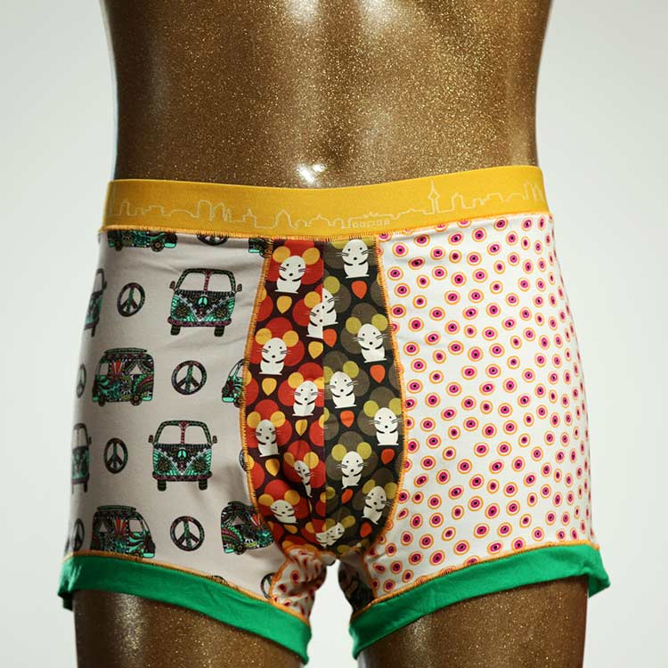 Estos calzoncillos son piezas realmente únicas y no tienen elásticos en las piernas y quedan sueltos y ofrecen suficiente espacio debajo. Hecho de material natural suave, transpirable y elástico, cómodo de llevar e interior de algodón orgánico.