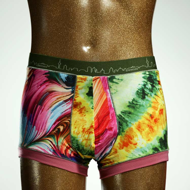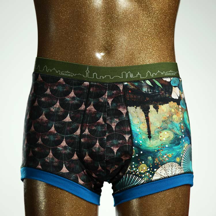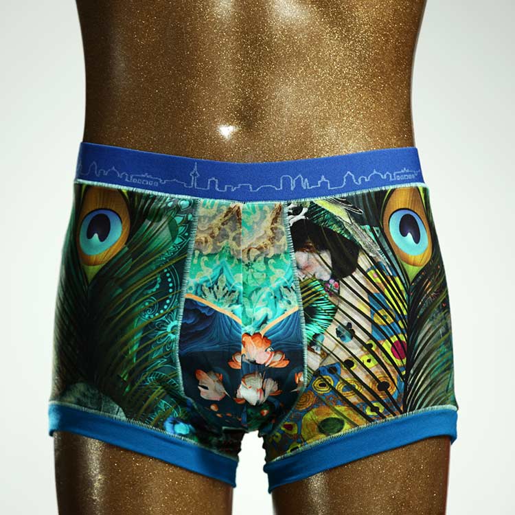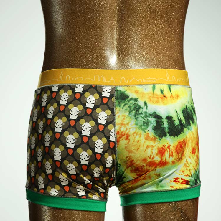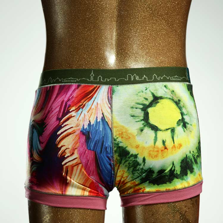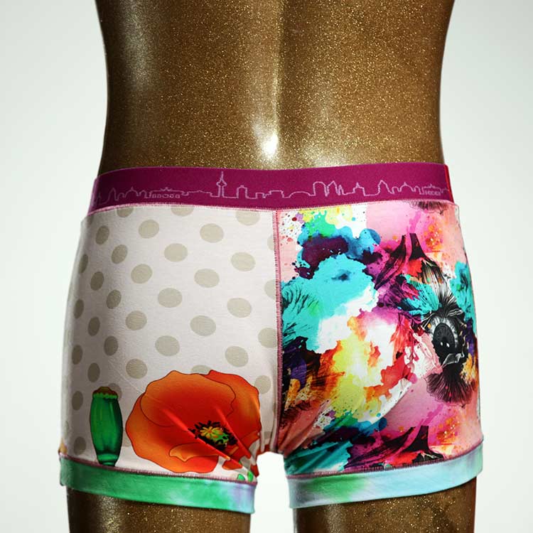Estos calzoncillos son piezas realmente únicas y no tienen elásticos en las piernas y quedan sueltos y ofrecen suficiente espacio debajo. Hecho de material natural suave, transpirable y elástico, cómodo de llevar e interior de algodón orgánico.