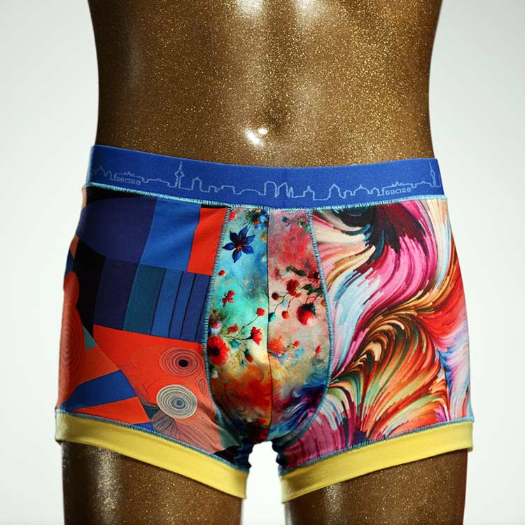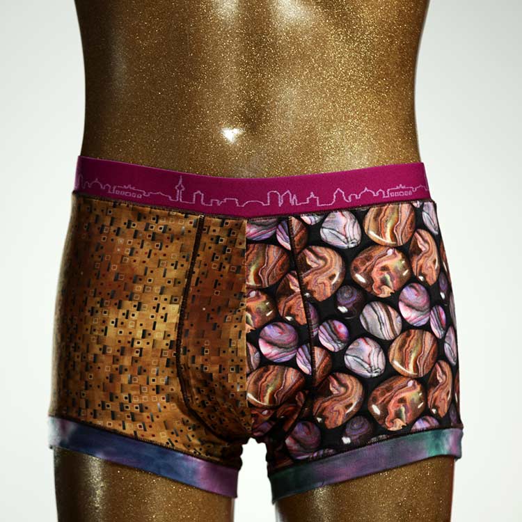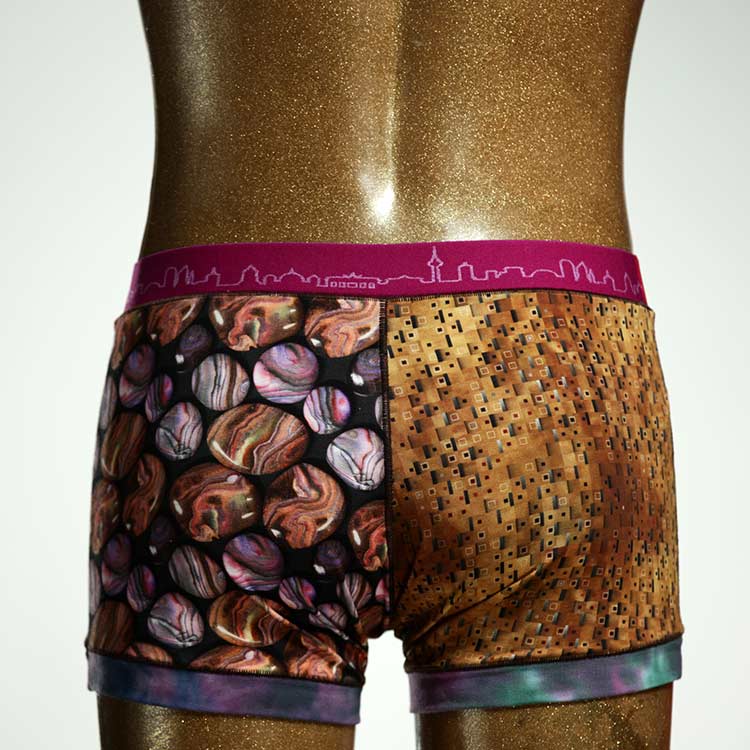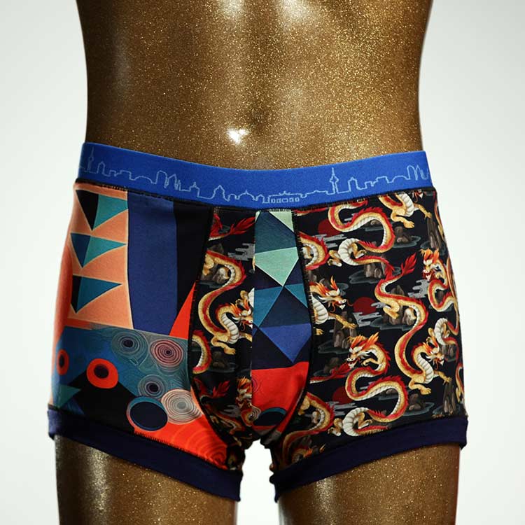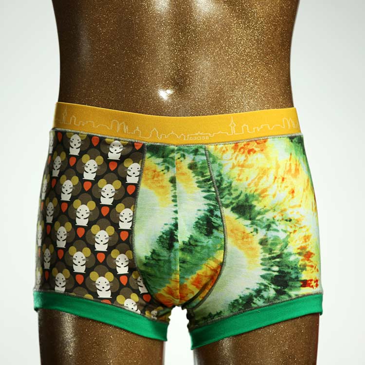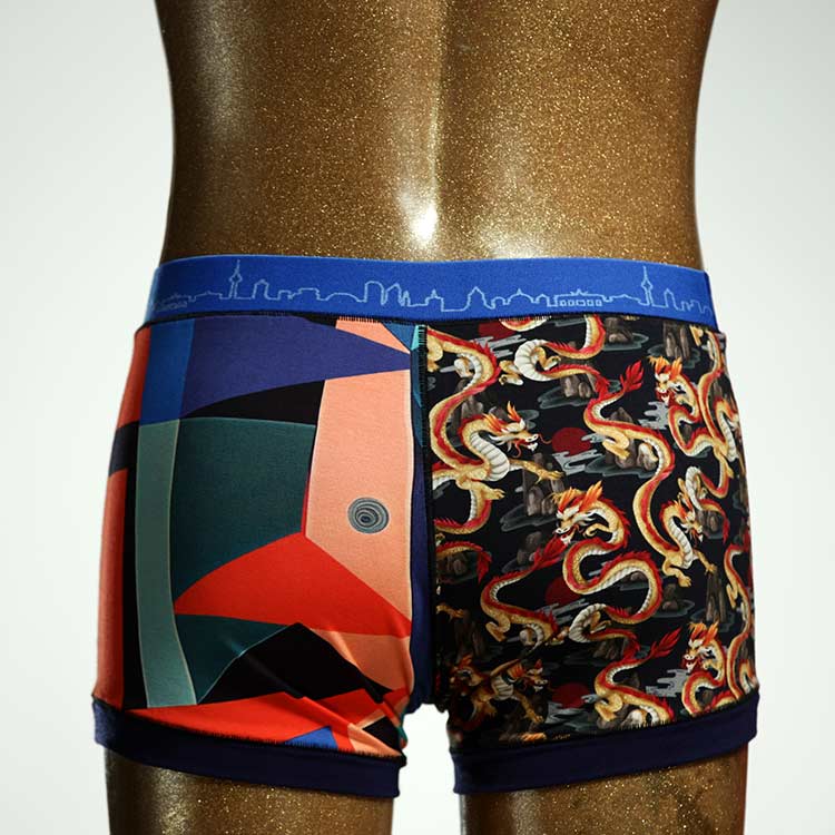 Estos calzoncillos son piezas realmente únicas y no tienen elásticos en las piernas y quedan sueltos y ofrecen suficiente espacio debajo. Hecho de material natural suave, transpirable y elástico, cómodo de llevar e interior de algodón orgánico.