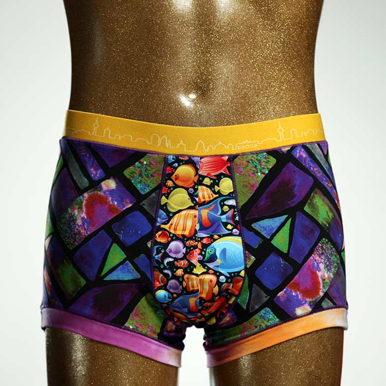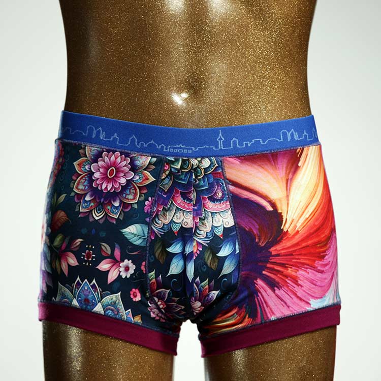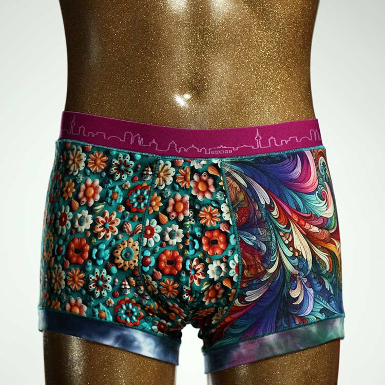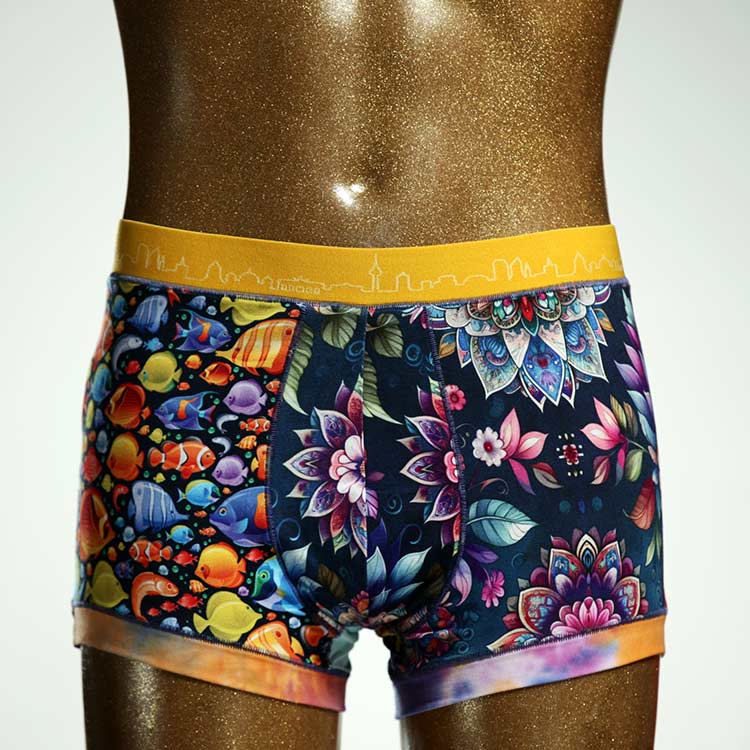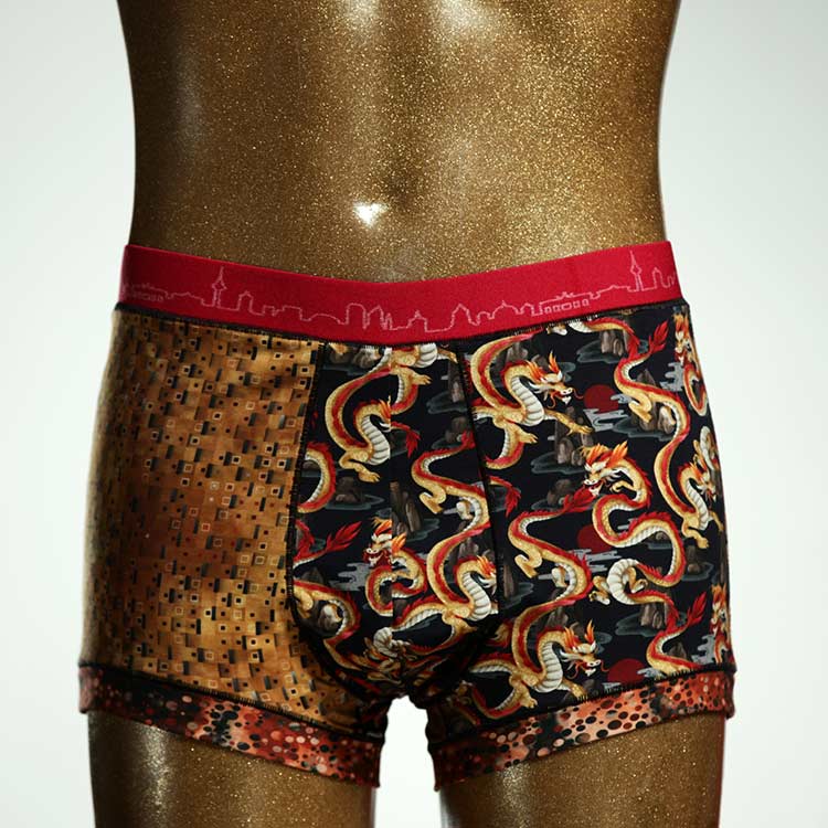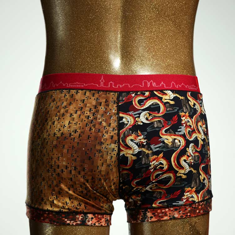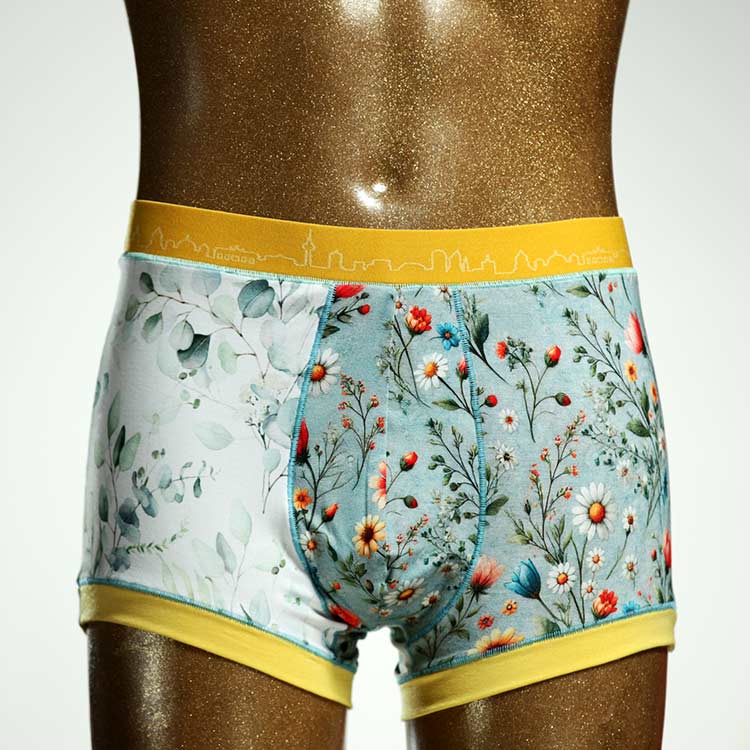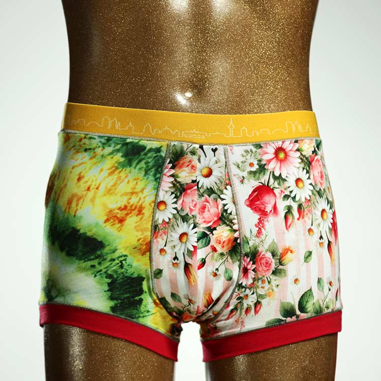 Estos calzoncillos son piezas realmente únicas y no tienen elásticos en las piernas y quedan sueltos y ofrecen suficiente espacio debajo. Hecho de material natural suave, transpirable y elástico, cómodo de llevar e interior de algodón orgánico.