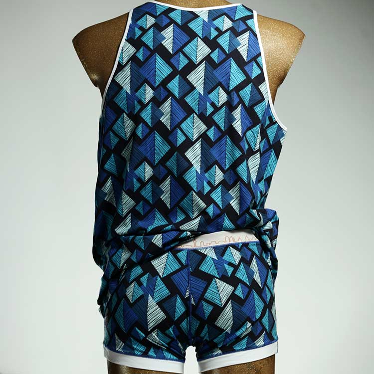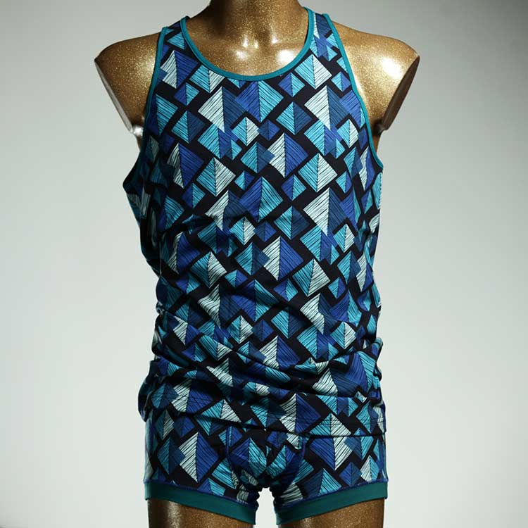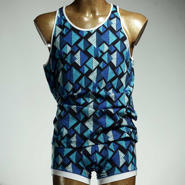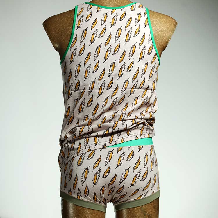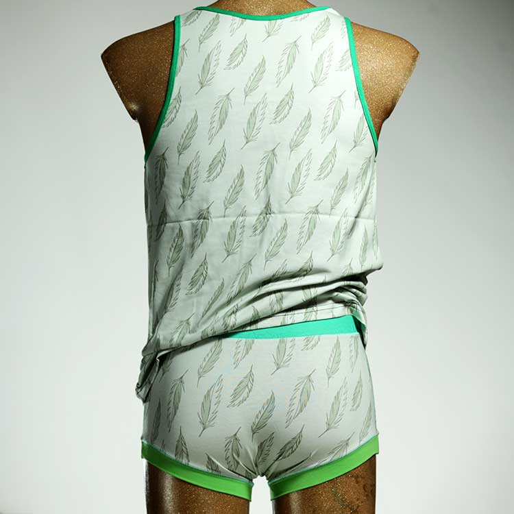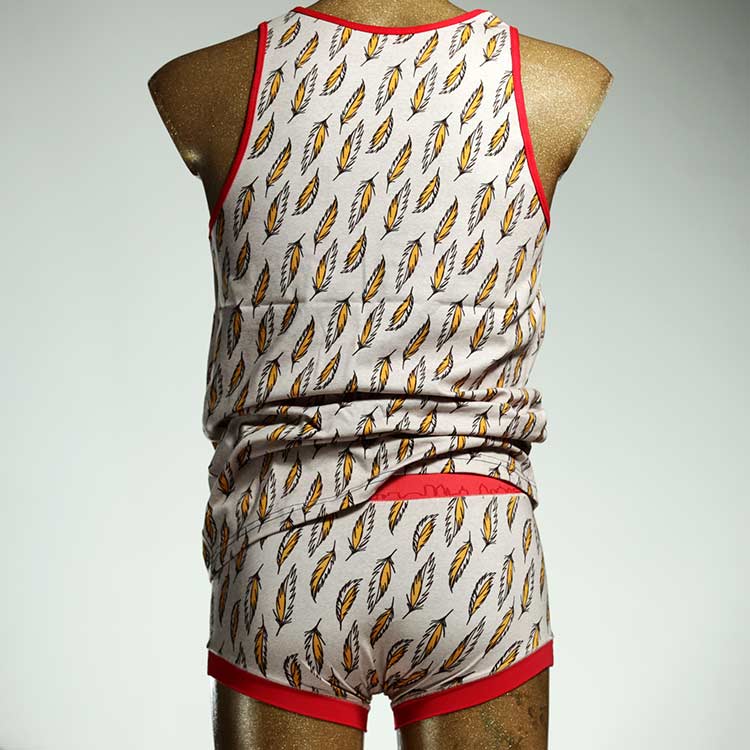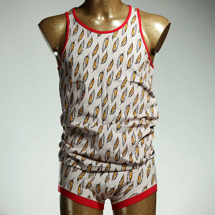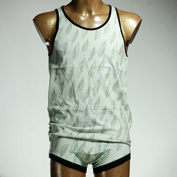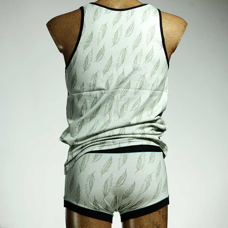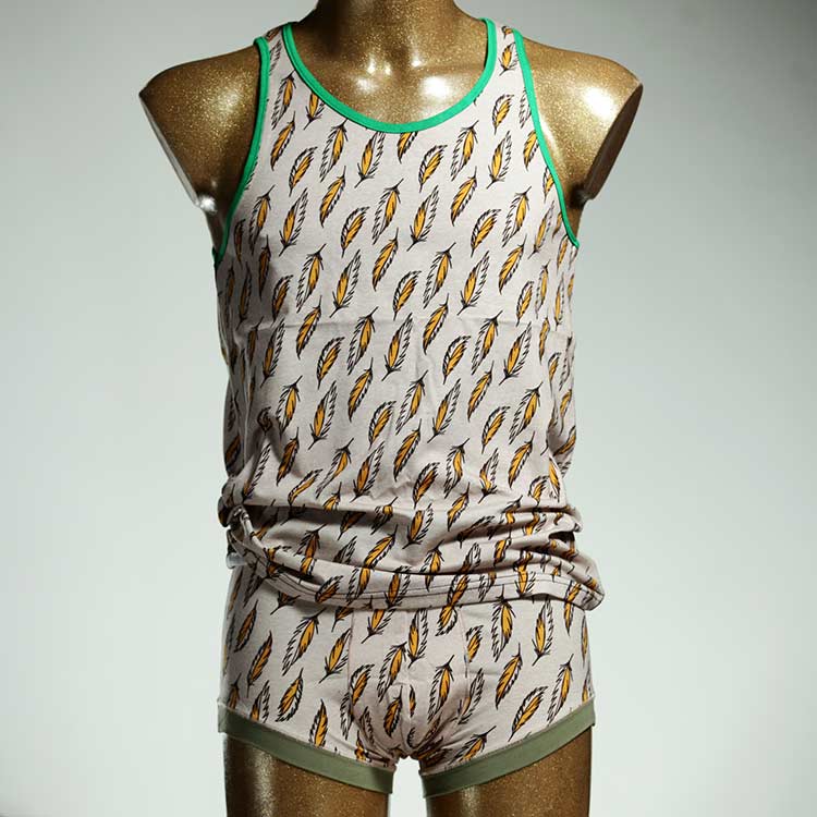 Conjuntos de ropa interior cómodos y sostenibles hechos de algodón orgánico para hombres, que consisten en una camiseta para debajo y por encima y un pantalón corto para hombre a juego. Jersey de algodón orgánico suave, transpirable y elástico, certificado GOTS.