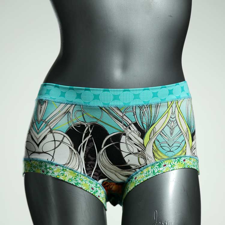 Les culottes sont notre best-seller juste après les culottes. Des objets vraiment uniques fabriqués à Berlin. Sont de coupe relativement large et en jersey de coton doux et élastique sans caoutchouc collant. Couvre complètement le fond, selon la personne, et ne se coince nulle part. Similaire au shorty. Doux pour la peau et très confortable.