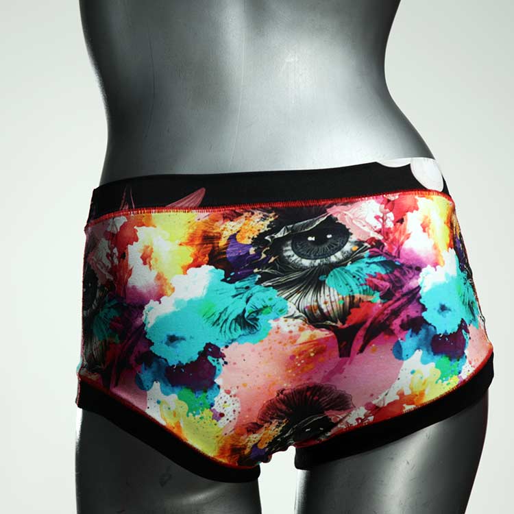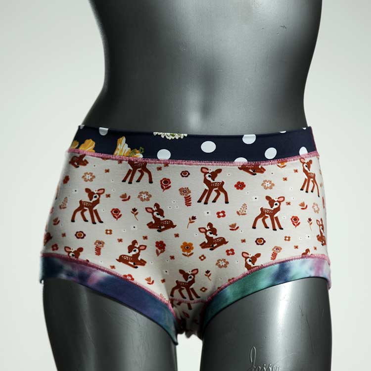Les culottes sont nos produits les plus populaires, juste après les culottes. De véritables pièces uniques fabriquées à Berlin. Sont de coupe relativement large et en jersey de coton doux, élastique et agréable pour la peau sans caoutchoucs gênants. Ils couvrent complètement le fond et ne se coincent nulle part.