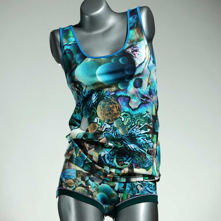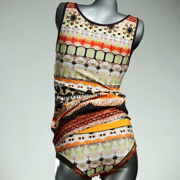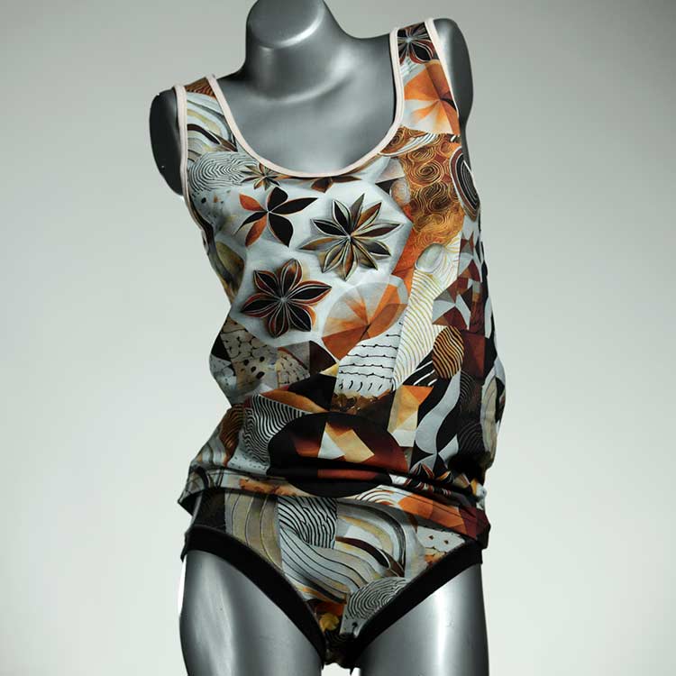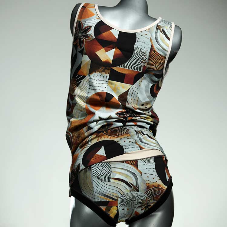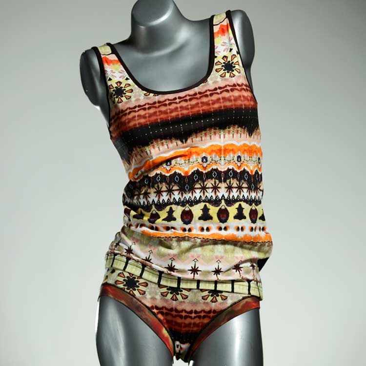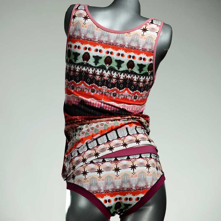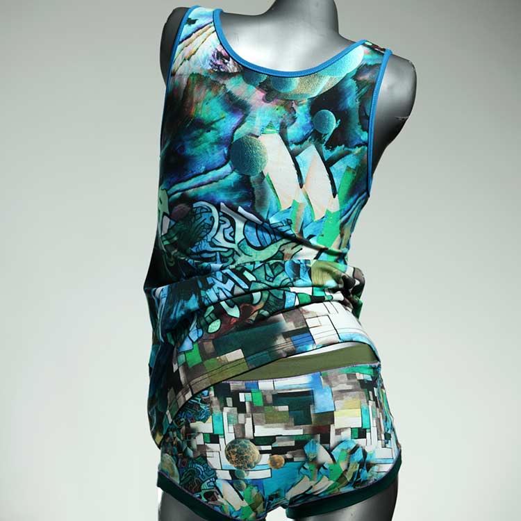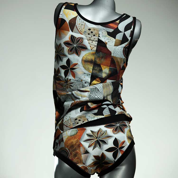 Adorable ensemble de sous-vêtements avec haut en coton doux, respirant et élastique pour le dessous et le dessus. Le haut est coupé à la taille, le décolleté est fermé à mi-hauteur. Avec élastique en dentelle fine ou ourlet en coton sur les bras et l'encolure.