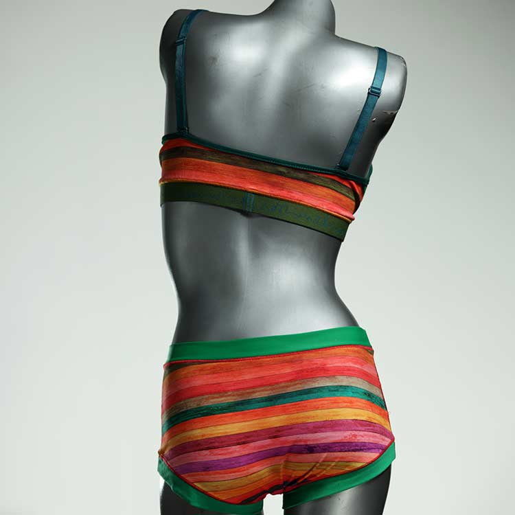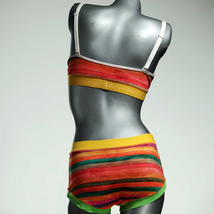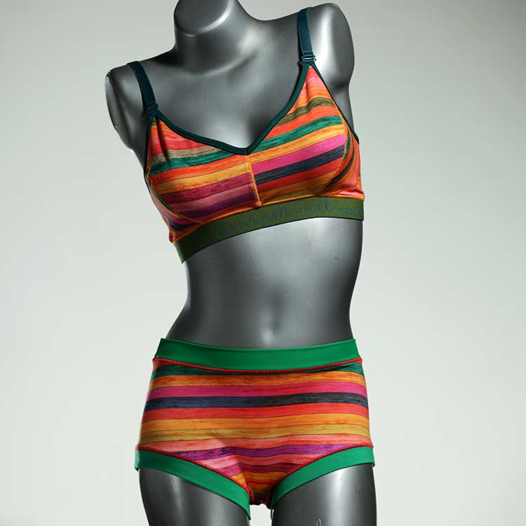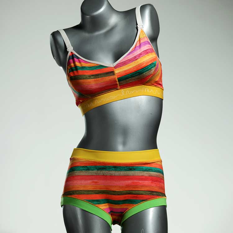 Dolce completo di reggiseno con jersey di cotone biologico a doppio strato, elastico e traspirante per sotto e sopra con spalline larghe e mutandine abbinate con disegni unici. Biancheria intima unica adorabile e confortevole, equa e prodotta in modo sostenibile dalla nostra manifattura.