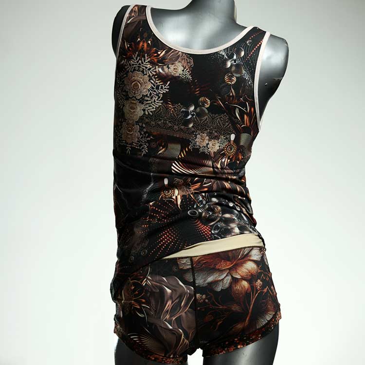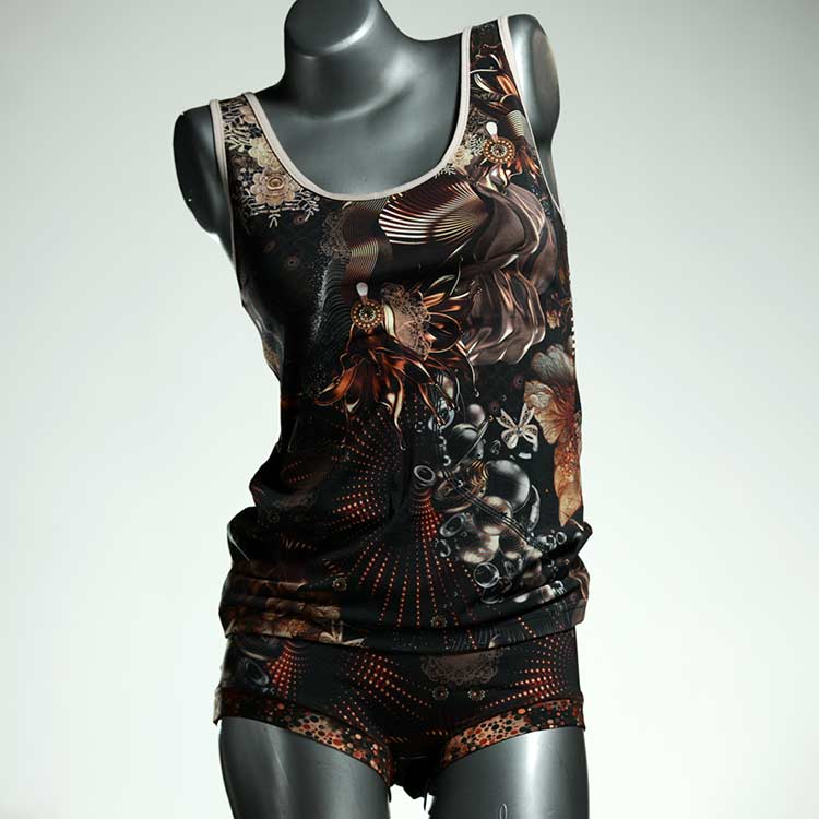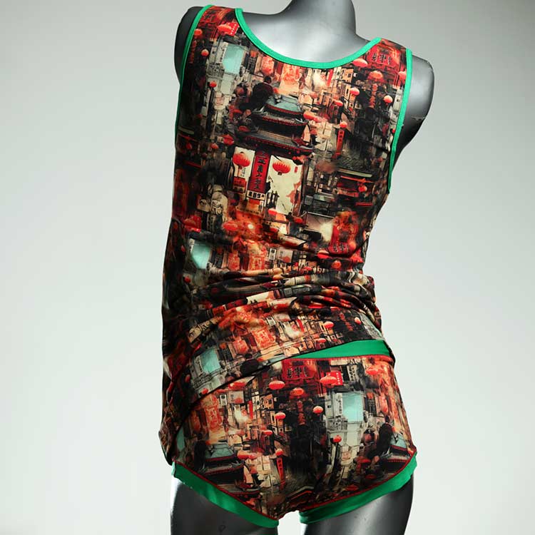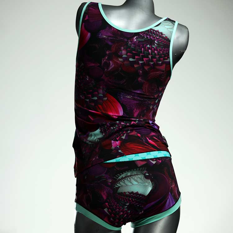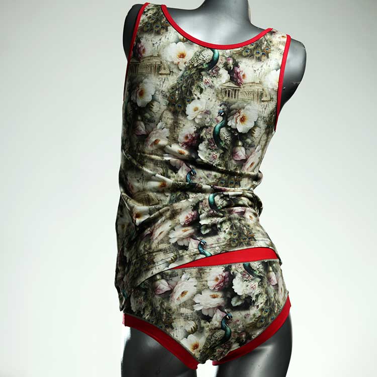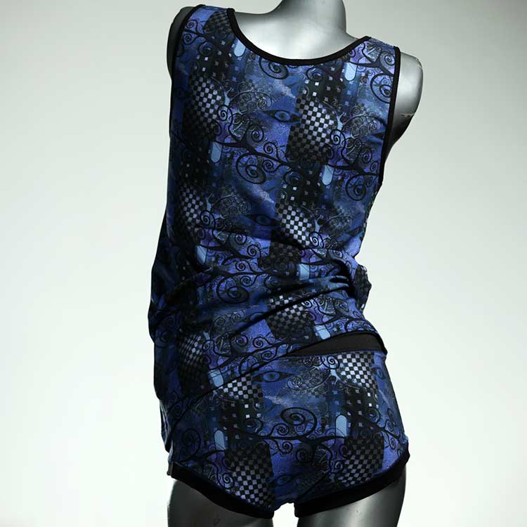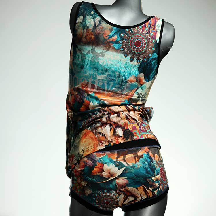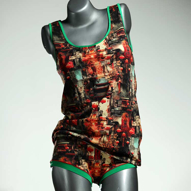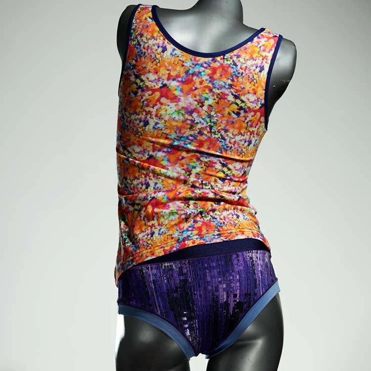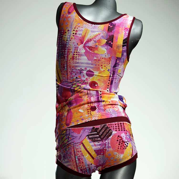 Adorabile completo di biancheria intima con parte superiore in morbido cotone elastico traspirante per sotto e sopra. Il top è tagliato in vita, lo scollo è chiuso a metà. Con fine pizzo elastico o orlo in cotone sulle braccia e sullo scollo.
