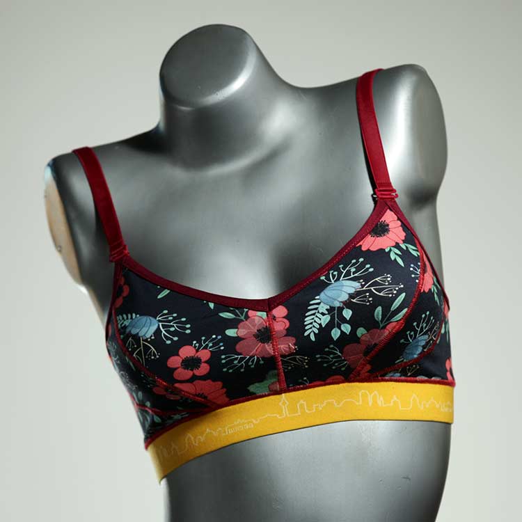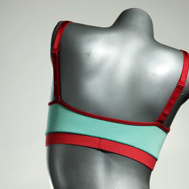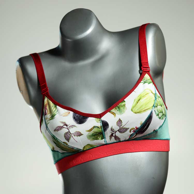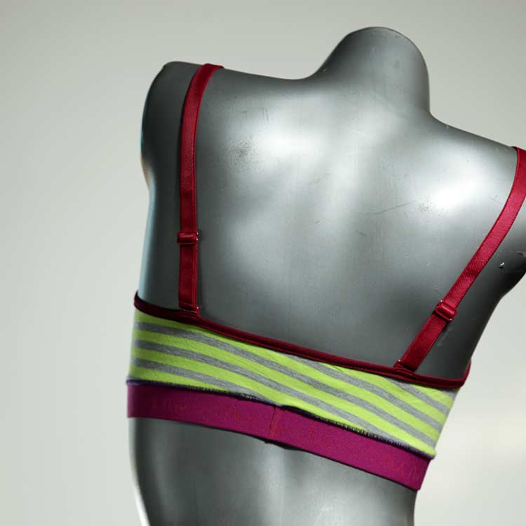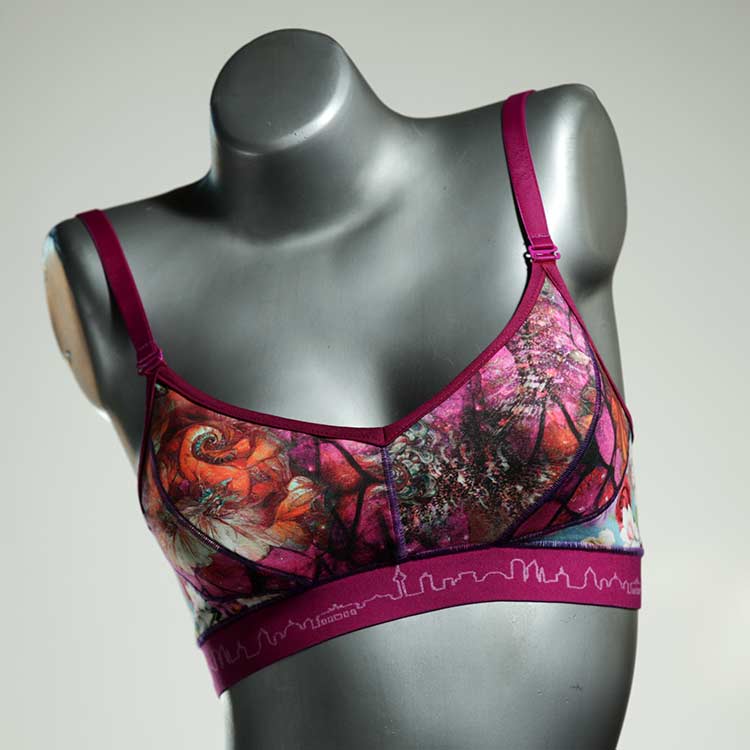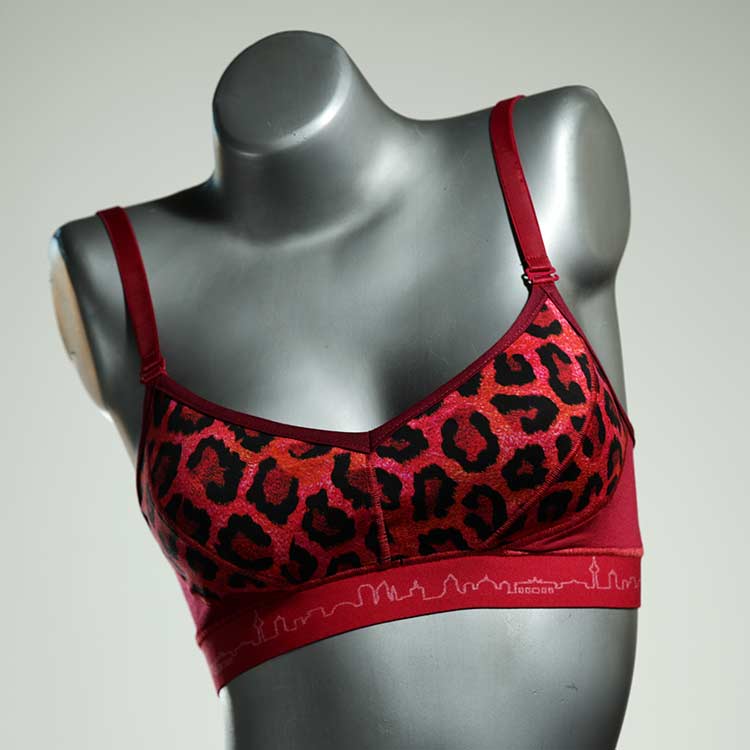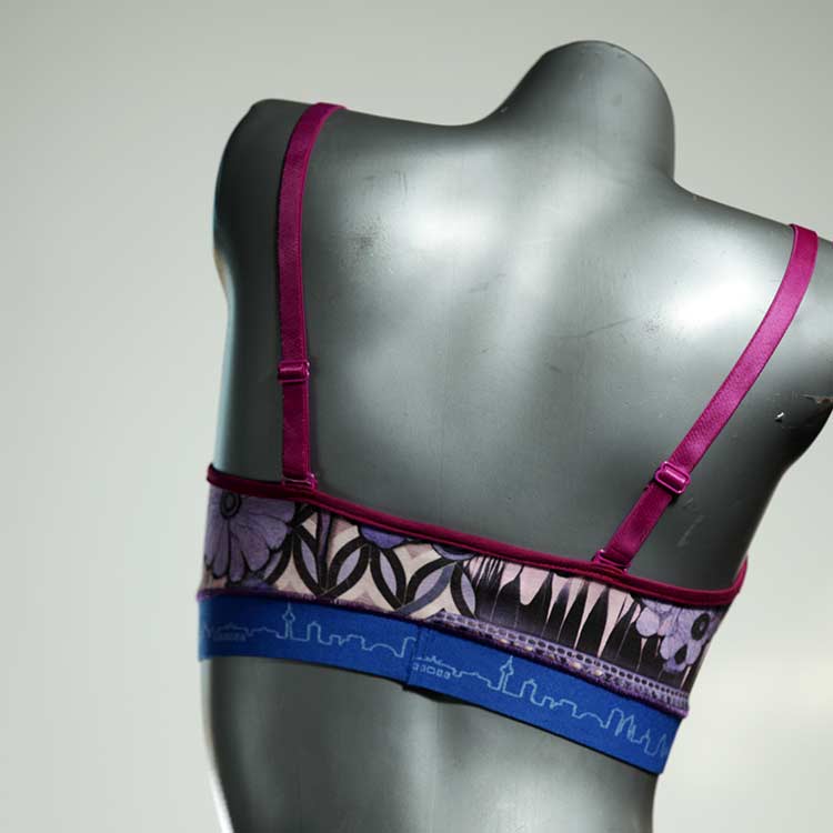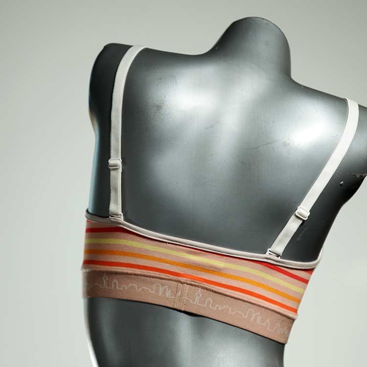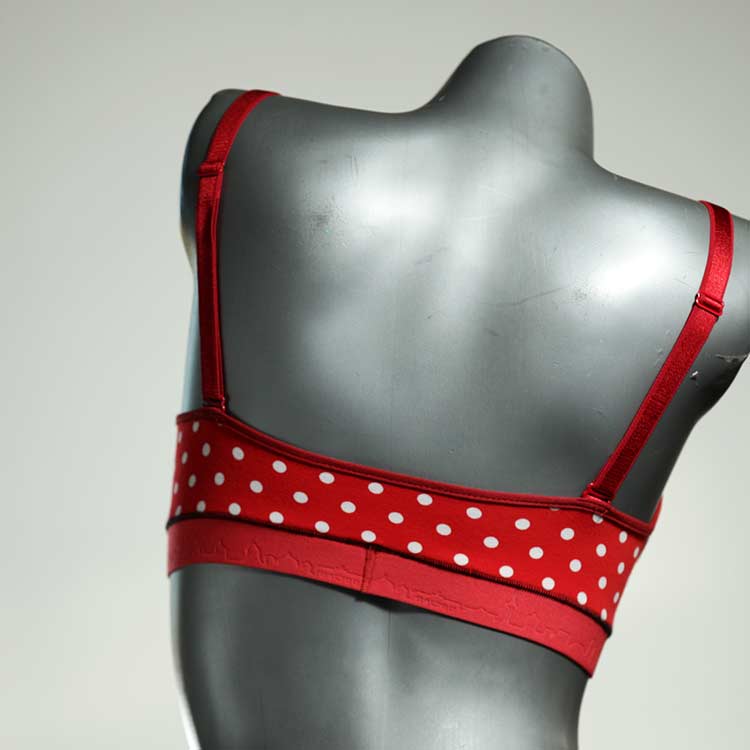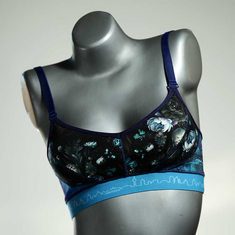 Reggiseni morbidi e coccolosi realizzati in jersey di cotone traspirante con design unici. Veri pezzi unici che abbiamo disegnato secondo i vostri desideri. Senza fili, senza cuscino o chiusura, sono comodi da indossare e si adattano perfettamente al tuo corpo. Le spalline sono larghe 16 mm, le coppe sono a doppio strato e realizzate in cotone organico all'interno. I reggiseni di Berlin Underwear non sono principalmente sexy, dovrebbero essere comodi. Sono adatti anche come reggiseni per l'allattamento.