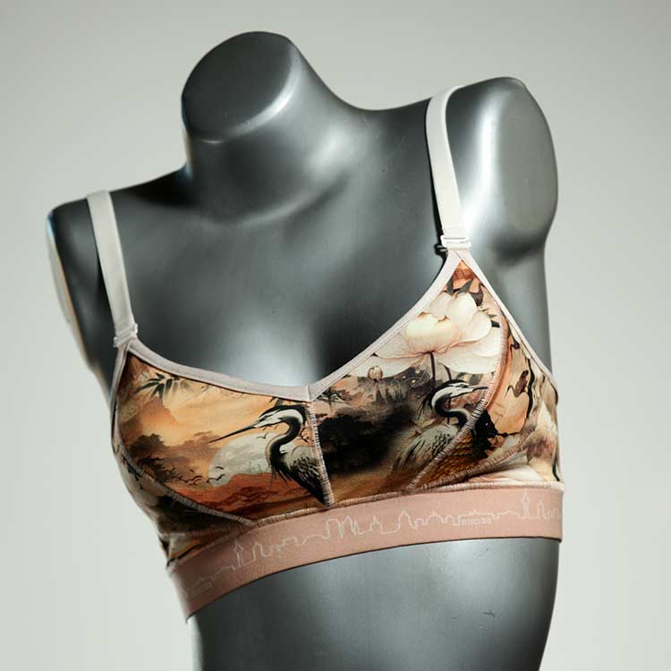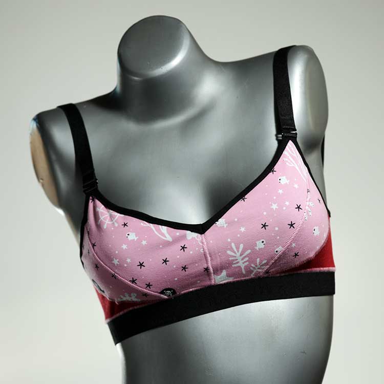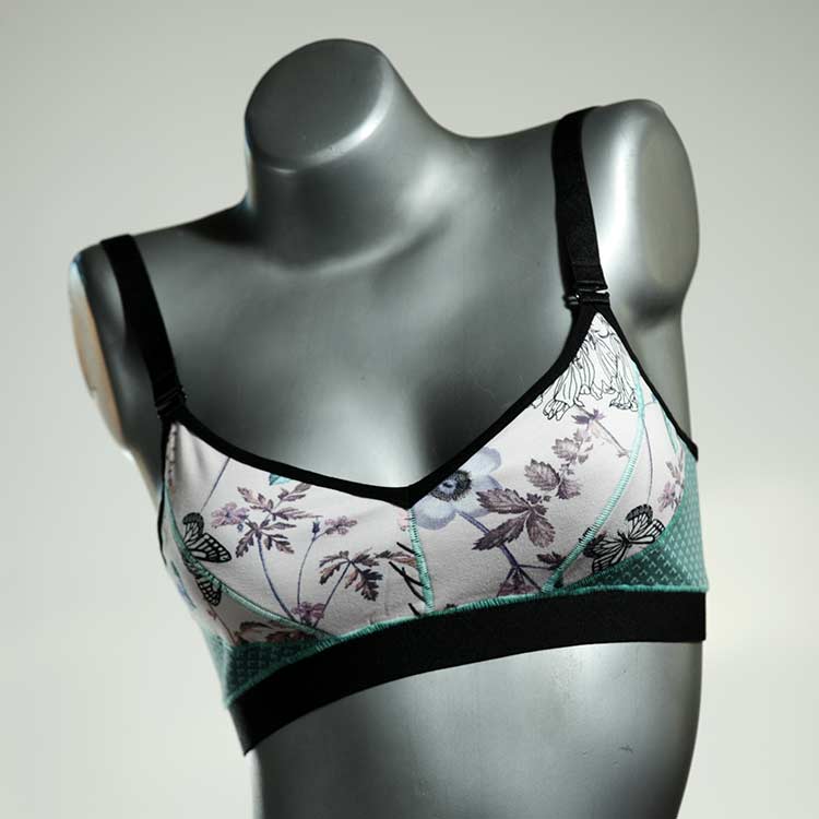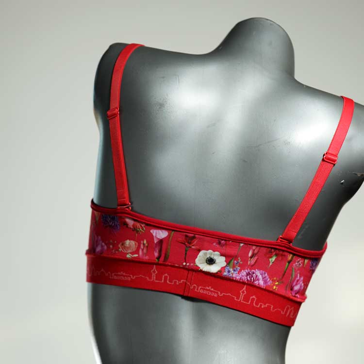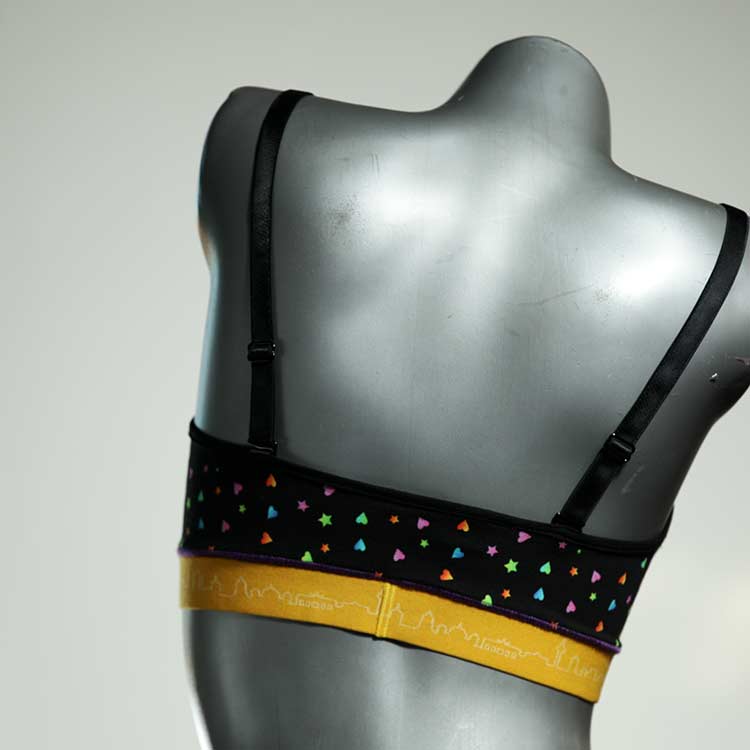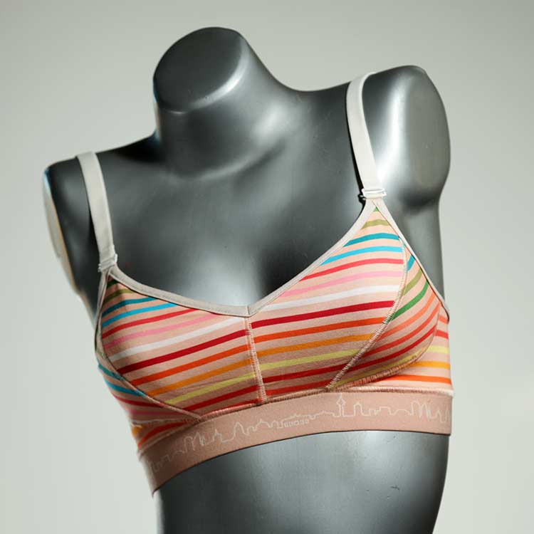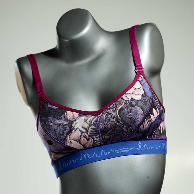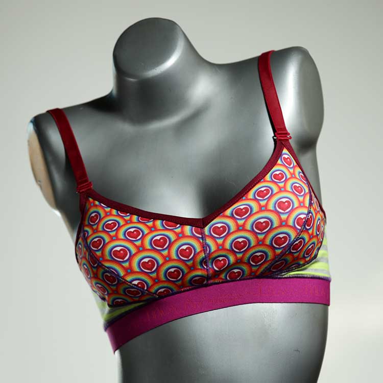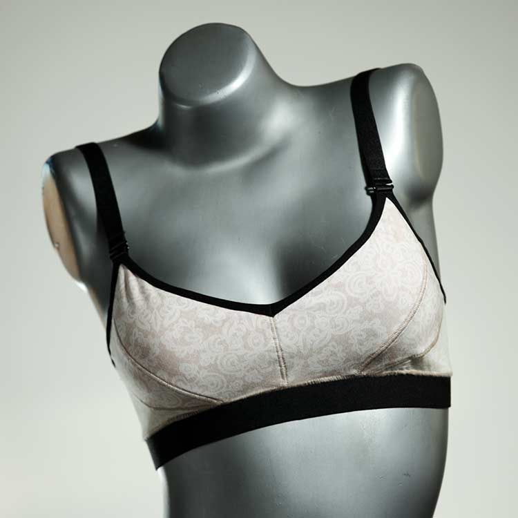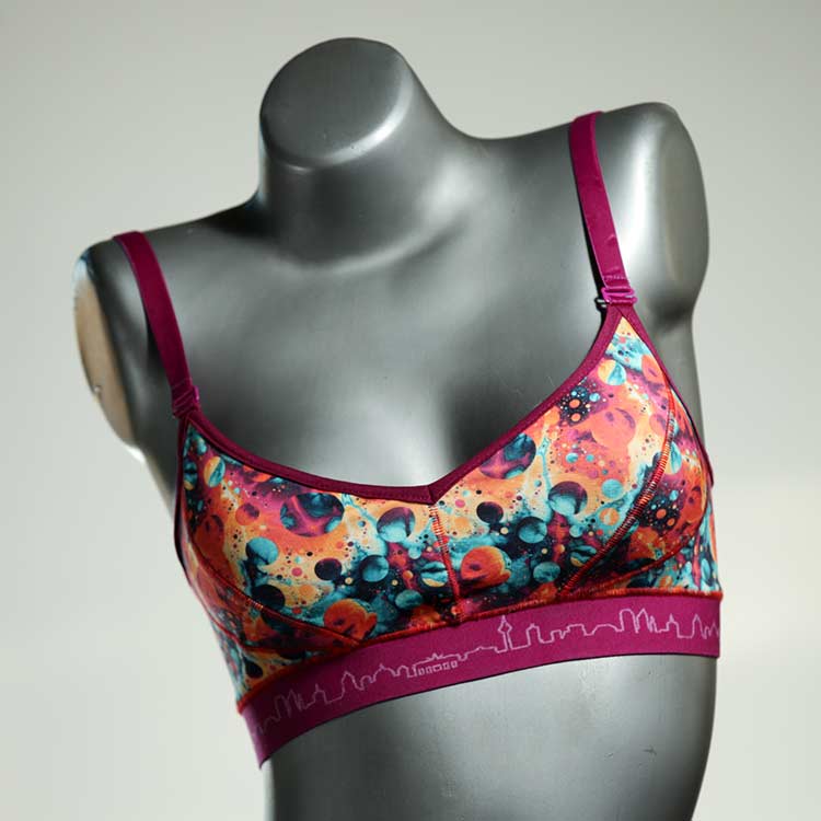 Reggiseni morbidi e coccolosi realizzati in jersey di cotone traspirante con design unici. Veri pezzi unici che abbiamo disegnato secondo i vostri desideri. Senza fili, senza cuscino o chiusura, sono comodi da indossare e si adattano perfettamente al tuo corpo. Le spalline sono larghe 16 mm, le coppe sono a doppio strato e realizzate in cotone organico all'interno. I reggiseni di Berlin Underwear non sono principalmente sexy, dovrebbero essere comodi. Sono adatti anche come reggiseni per l'allattamento.